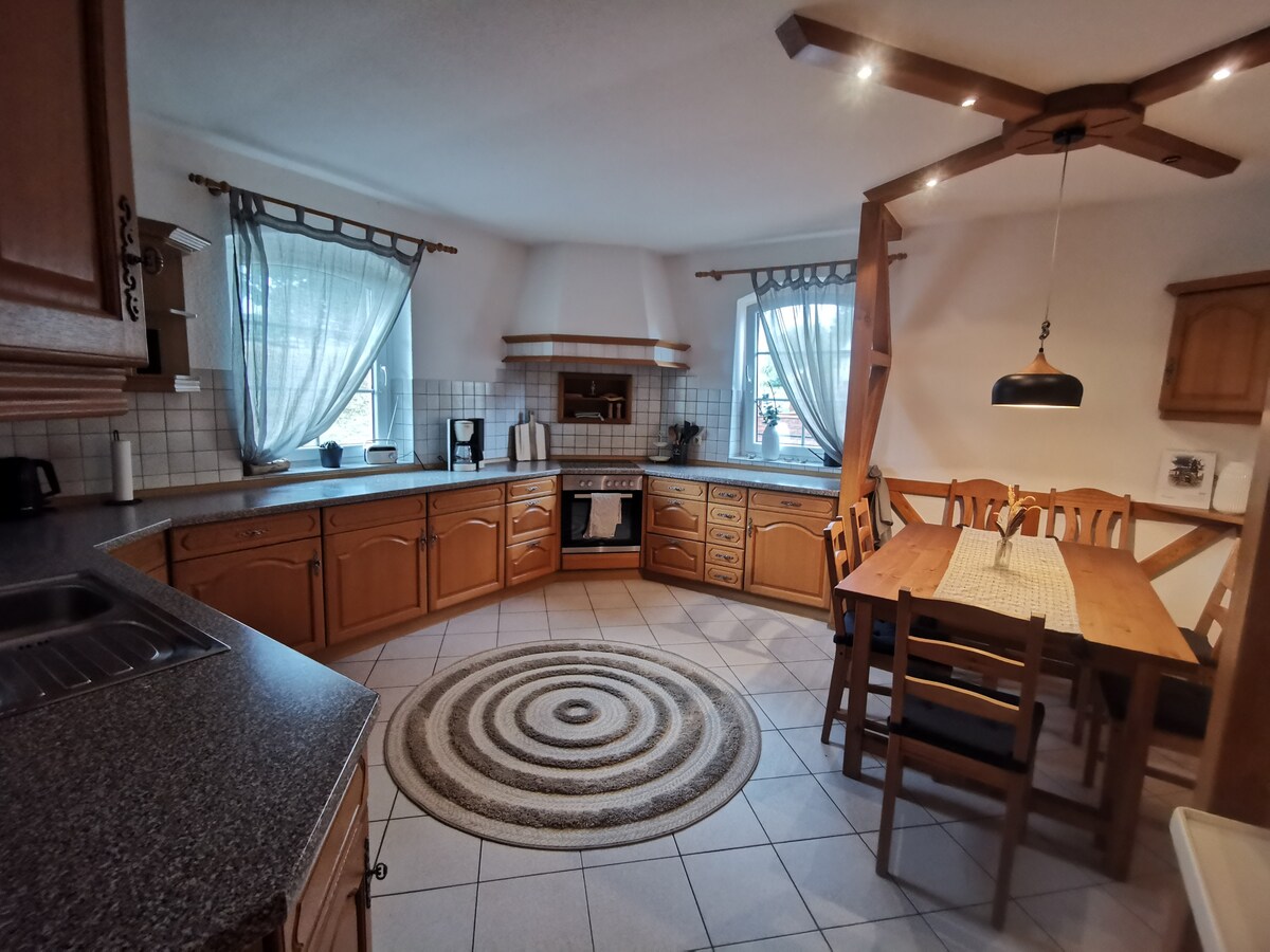 The 33 m² apartment is very comfortably furnished and is located on the ground floor on a little Farm countryside on the edge of the Thuringian Slate Mountains . The apartment is equipped with satellite TV and small kitchen and bathroom.