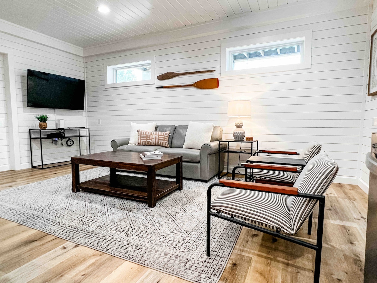 Escape the mundane and take your loved one to an oasis of romantic luxury on the bayou. Admire unparalleled serenity, beauty, and tranquility from every window! Enjoy high-end furniture with plenty of natural light for a private paradise experience. Get away from it all - with numerous outdoor games; Jenga, ring toss and more! Spend the day together in a canoe exploring nature's beauty. Build special memories around a custom fire pit, delightful chairs & tiki torches. #Romance