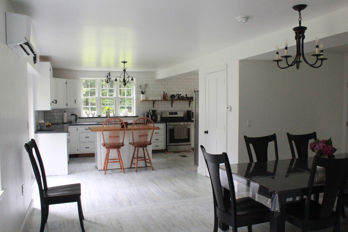 Estamos en el corazón del pintoresco condado de Lancaster, Pensilvania, a pocos minutos de innumerables restaurantes, atracciones y tiendas, incluidos Sight & Sound Theatre, Dutch Wonderland y Outlet Malls. Ya sea que vengas al campo para un fin de semana de vacaciones de exploración o una escapada tranquila para trabajar y rejuvenecer, ¡nuestra casa de huéspedes es la opción perfecta para ti! Hay varias mesas e islas diferentes para acomodar trabajo y cenar, así como espacio exterior para que los niños usen juguetes para montar y jugar.