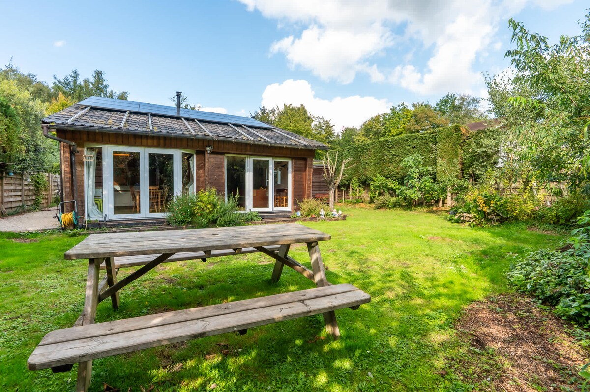 Holiday cabin with private garden, close to sea
