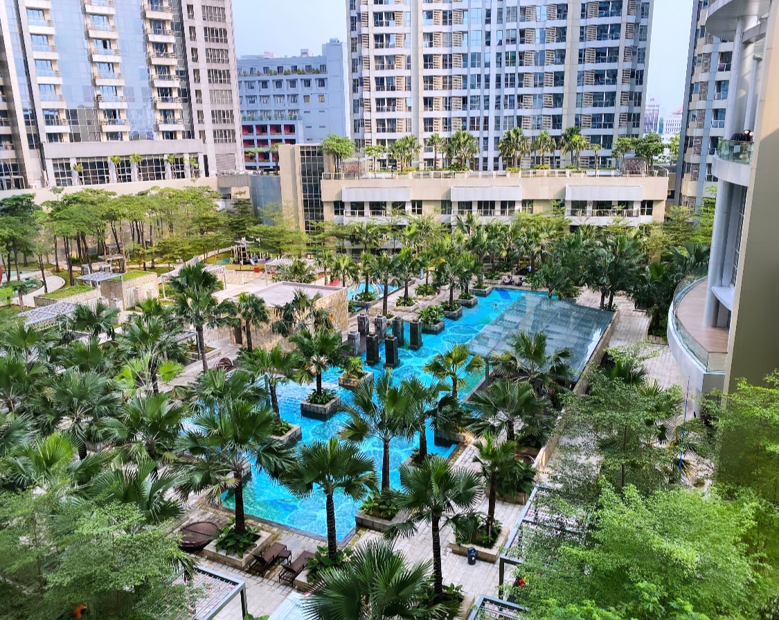Descubre nuestro apartamento en el centro de la ciudad, donde el diseño moderno se une a la comodidad familiar. Disfruta de los interiores espaciosos con electrodomésticos de alta calidad. El apartamento es una unidad de esquina, lo que significa que obtendrás una piscina de temática tropical y una impresionante vista a la ciudad en todas las habitaciones. El departamento está directamente conectado con Hub Life y Taman Anggrek Mall, que están a unos pasos del centro comercial Central Park Mall.
