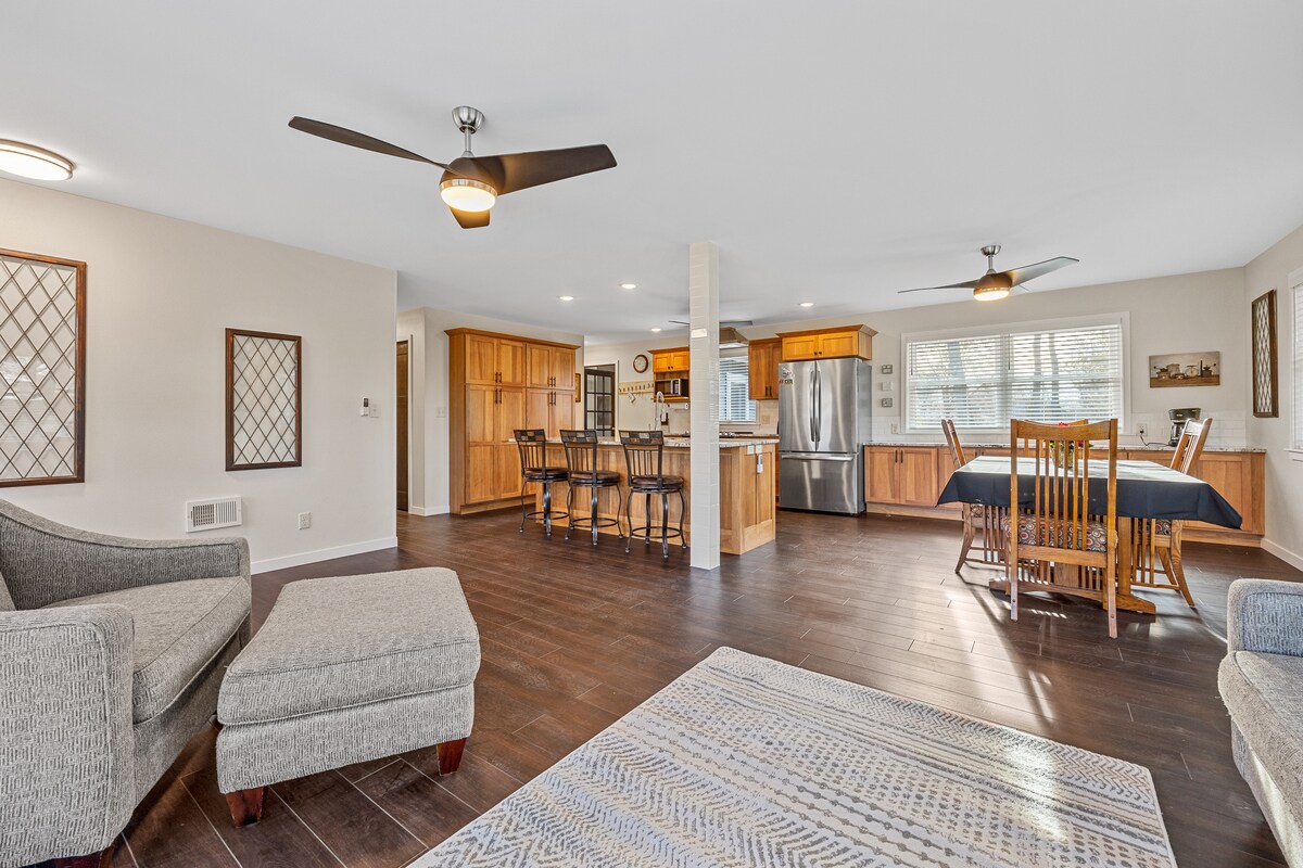 Con una ubicación céntrica, cerca de una parada de autobús, senderos para bicicletas y tiendas, este espacioso condominio tiene 2 dormitorios, 1,5 baños y un sofá cama adicional para huéspedes en la planta baja. Un espacio de trabajo exclusivo te permite trabajar fuera de casa. Relájate en la cubierta exterior o siéntate frente al televisor de 65pulgadas para ver tu servicio de streaming favorito. Por las mañanas, disfruta de la estación de café totalmente equipada. En la planta baja hay una lavadora y una secadora, así como un garaje para dos autos.