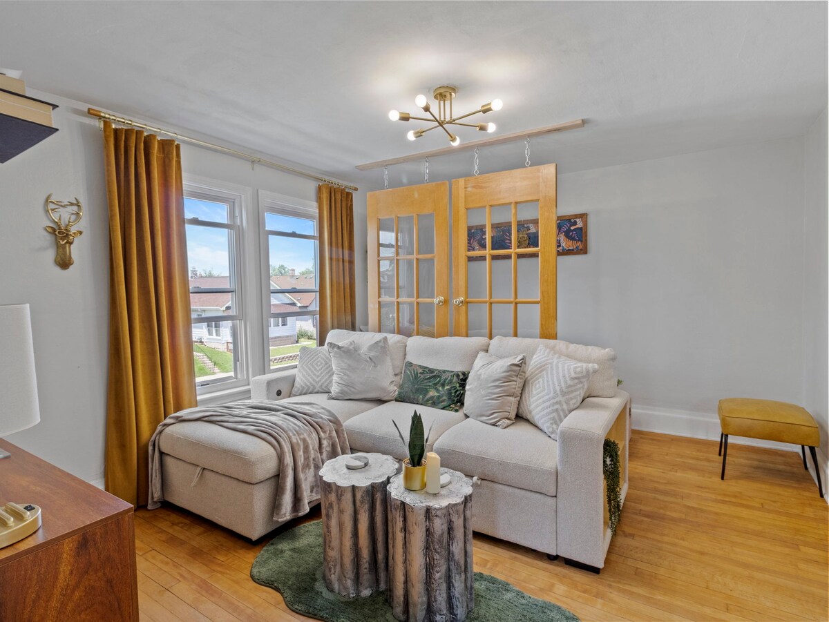 Disfruta de una estancia divertida y relajante con familiares o amigos en esta elegante, acogedora y cómoda unidad inferior, que cuenta con: 2 dormitorios (1 cama tamaño king, 1 cama tamaño queen) 1 baños Cocina totalmente equipada con mesa de comedor y barra de café designada Sala de estar con TV inteligente de 65 pulgadas (Netflix incluido) Espacio de oficina en casa Aparcamiento gratuito. Ubicada a poca distancia en coche (4 minutos) de la I94, esta casa ofrece fácil acceso a todos los principales lugares de interés de la ciudad. * La base ideal para explorar lo mejor de Milwaukee.