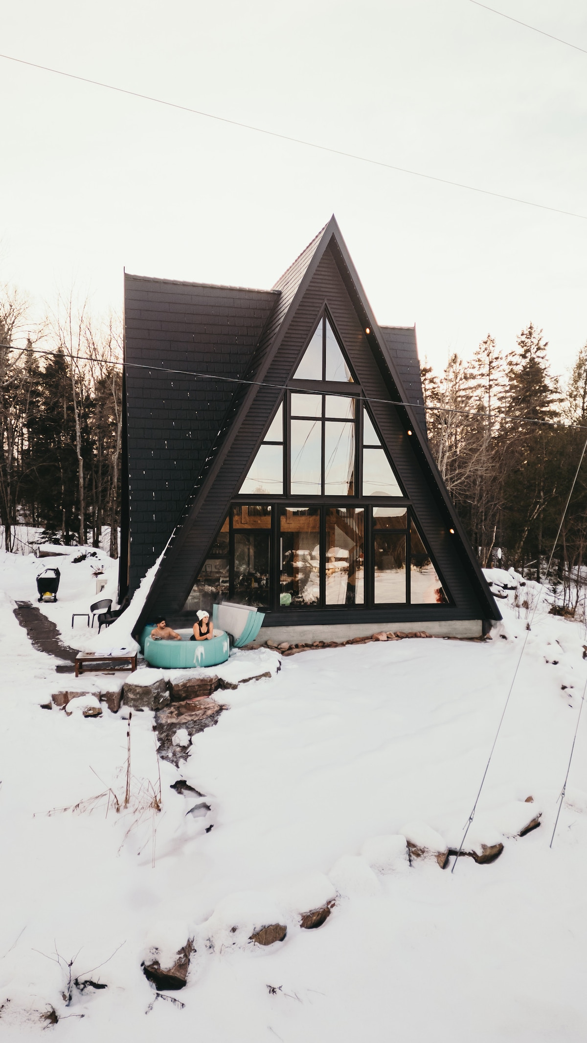 Bienvenido a AAT, tu escapada frente al agua en Timber A-Frame. Encaramado sobre el río francés. Rodeado por más de 2 acres de bosque del norte, este refugio arquitectónico combina lujo y naturaleza. Reúnete en el luminoso espacio abierto o relájate al aire libre junto al fuego o en la bañera de hidromasaje durante todo el año. Capacidad para 6 personas con un acogedor loft y una habitación principal con cama tamaño king apta para sillas de ruedas. Diseñado para la conexión, la comodidad y los momentos inolvidables. Crea recuerdos duraderos en AAT.