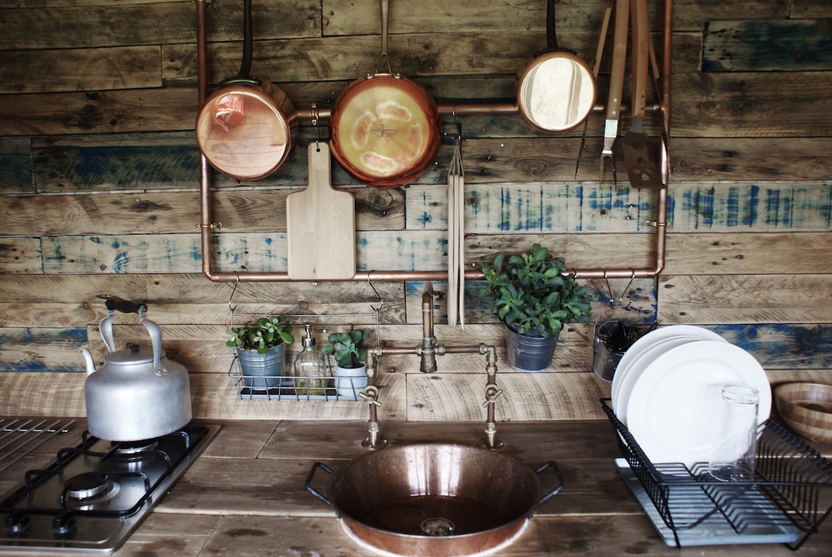 Alójate en una hermosa cabaña de pastor hecha a mano con bañera de hidromasaje de leña, con vistas a las ondulantes colinas de Devon que rodean el estuario de Salcombe. Esta cabaña ha sido elaborada con cariño a partir de materiales recuperados de la granja en funcionamiento, en medio de una zona de excepcional belleza natural. Disfruta de acogedoras noches bajo cielos estrellados calentándote junto al fuego o en nuestro jacuzzi de leña, y ¡Pasa tus días remando por el hermoso estuario con kayaks que puedes alquilar con nosotros!