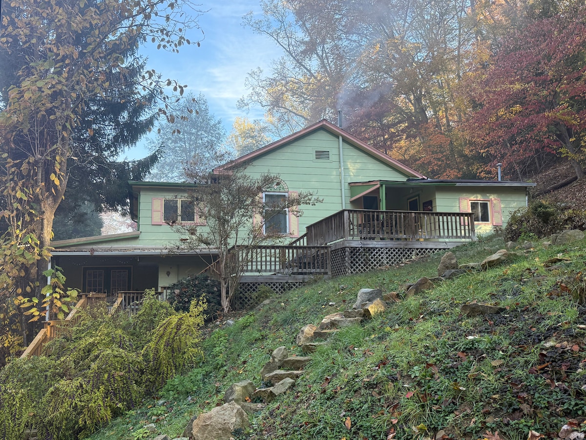¡Cabaña frente al mar ubicada entre el río Greenbrier y el sendero del río Greenbrier! VISTAS INCREÍBLES, entorno arbolado tranquilo, ambiente rústico boho, comodidades modernas. Excelente ubicación para practicar kayak, pesca, ciclismo, senderismo, relajarse y ver todo lo que la pintoresca ciudad de Lewisburg (a 15 minutos en coche) tiene que ofrecer, incluidas tiendas locales, galerías, restaurantes, destilería y Lost World Cavern. ¡Excursión de un día a Snowshoe, The Greenbrier o New River Gorge! Deja atrás la carrera de ratas y adéntrate en la naturaleza.
