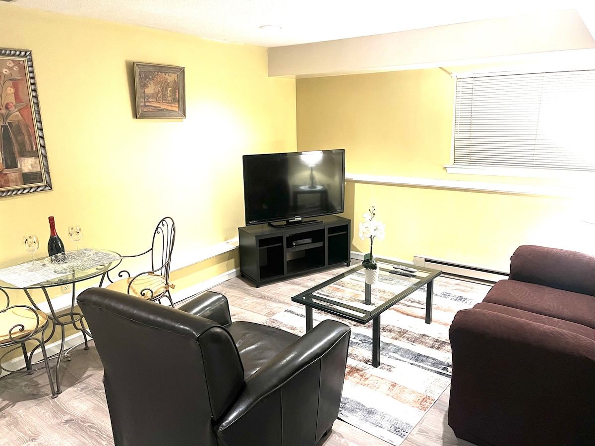 El apartamento de 1 dormitorio recientemente renovado está a 10 minutos a pie del centro de Stamford y a 50 minutos en tren de Manhattan. Cama tamaño queen en el dormitorio y sofá cama en la sala de estar con capacidad para 4 personas. Internet/Wifi, cafetera Keurig, sábanas, toallas, platos, cubiertos y ollas/sartenes están incluidos. **A partir de mayo de 2023, se ha obtenido una nueva plaza de aparcamiento más grande, gratuita e instrucciones claras disponibles para los huéspedes.