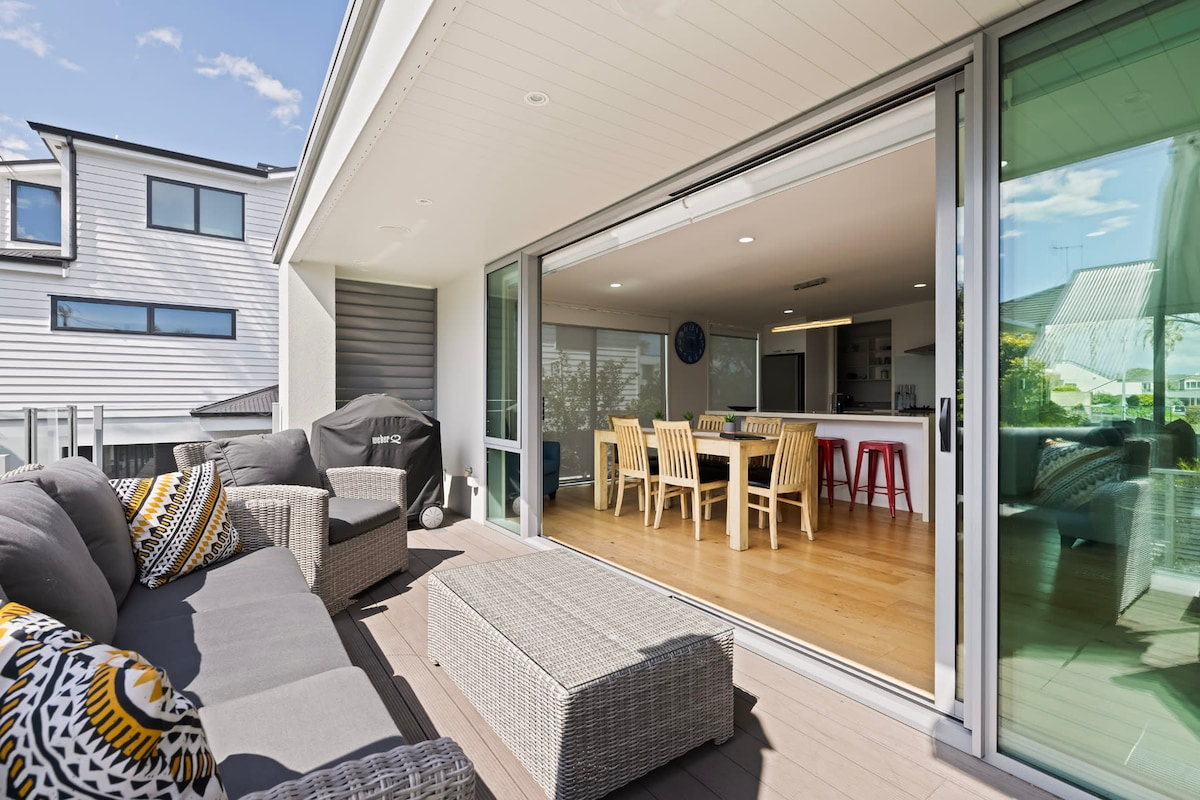 Una casa de diseño arquitectónico en una ubicación privilegiada de Mount Maunganui, que está a solo unos minutos a pie de la playa y a cinco minutos a pie de las cafeterías y boutiques de The Mount. Esta casa ofrece estacionamiento en garaje y estacionamiento en la calle, tres dormitorios, dos baños, una gran sala de estar de planta abierta, cocina totalmente equipada y dos patios al aire libre. Esta casa es perfecta para una pareja o para una familia que viaja con adolescentes (lamentablemente no se aceptan bebés ni niños menores de 12 años).