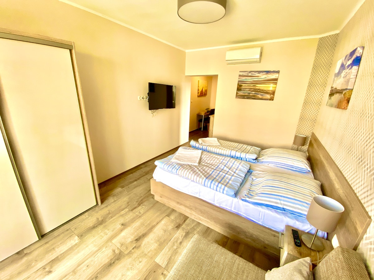 Képzeld csak el: a part közelsége miatt annyit lehetsz a strandon, amennyit csak szeretnél, és ha már meguntad, bármikor visszatérhetsz az apartmanba, hiszen alig pár lépést kell csak megtenned. Az apartmanok mindegyikénél alap a főzési lehetőség, illetve a hűtőhasználat, a Wi-Fi, továbbá a Full HD televízió. Az apartmanok mindegyike légkondicionált.