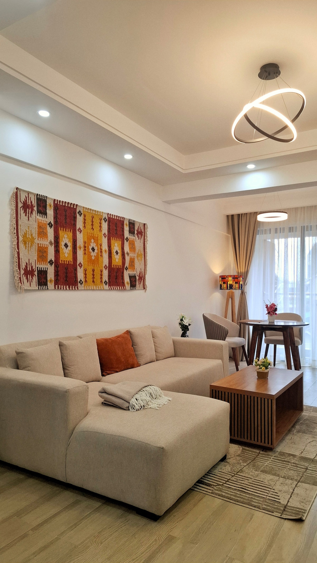 Unwind in this Iconic space that has been furnished with bespoke fittings and furniture throughout designed to help rejuvenate, restore, and recharge your energy as you decompress on holiday or after a day at work. The Executive suite is located centrally in Nairobi, 30 mins from the airport and has a mall at its door step across the road. There's WiFi, a heated swimming pool, Fully equipped kitchen, Gym, free parking plus more, all inside the gated, secure 24hr security guarded Complex.