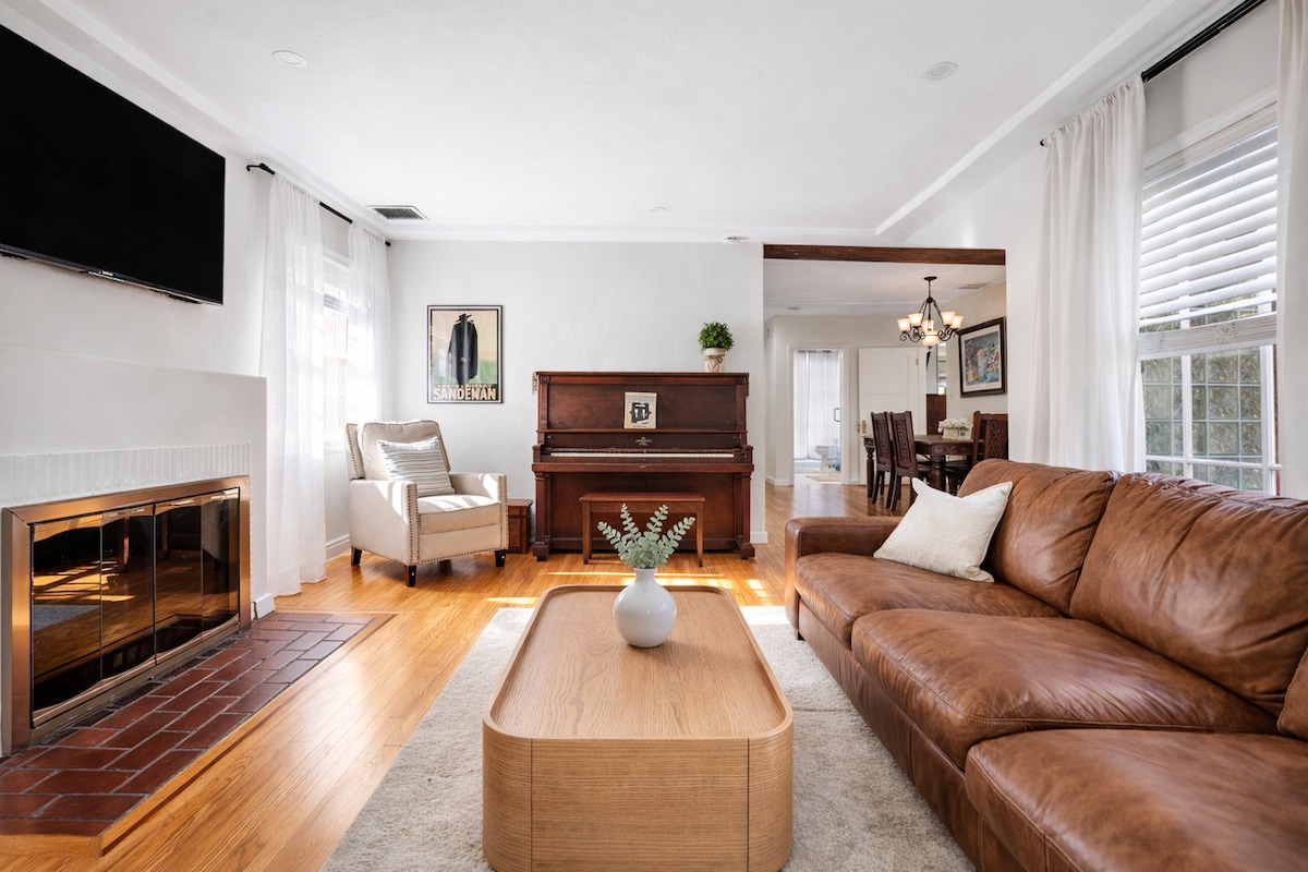 CASA principal doble de 1260 pies cuadrados LIMPIA y LUMINOSA solo para ti. Aire acondicionado, 2 camas tamaño queen, vestidores, suelos de madera, buenas configuraciones de entretenimiento de TV, lavadora/secadora, aparcamiento, cocina de chef remodelada, 2 cafeteras (goteo y prensa francesa), lavavajillas y comedor. Grandes JARDINES delanteros y traseros (compartidos*) con porche trasero, barbacoa de gas y pequeño pozo de fuego al aire libre. Wifi, TV por cable, reproductores Blu-Ray/acceso a Netflix, Hulu, etc. en todas las habitaciones. La sala de estar tiene CHIMENEA, sonido envolvente y sofá cama queen.