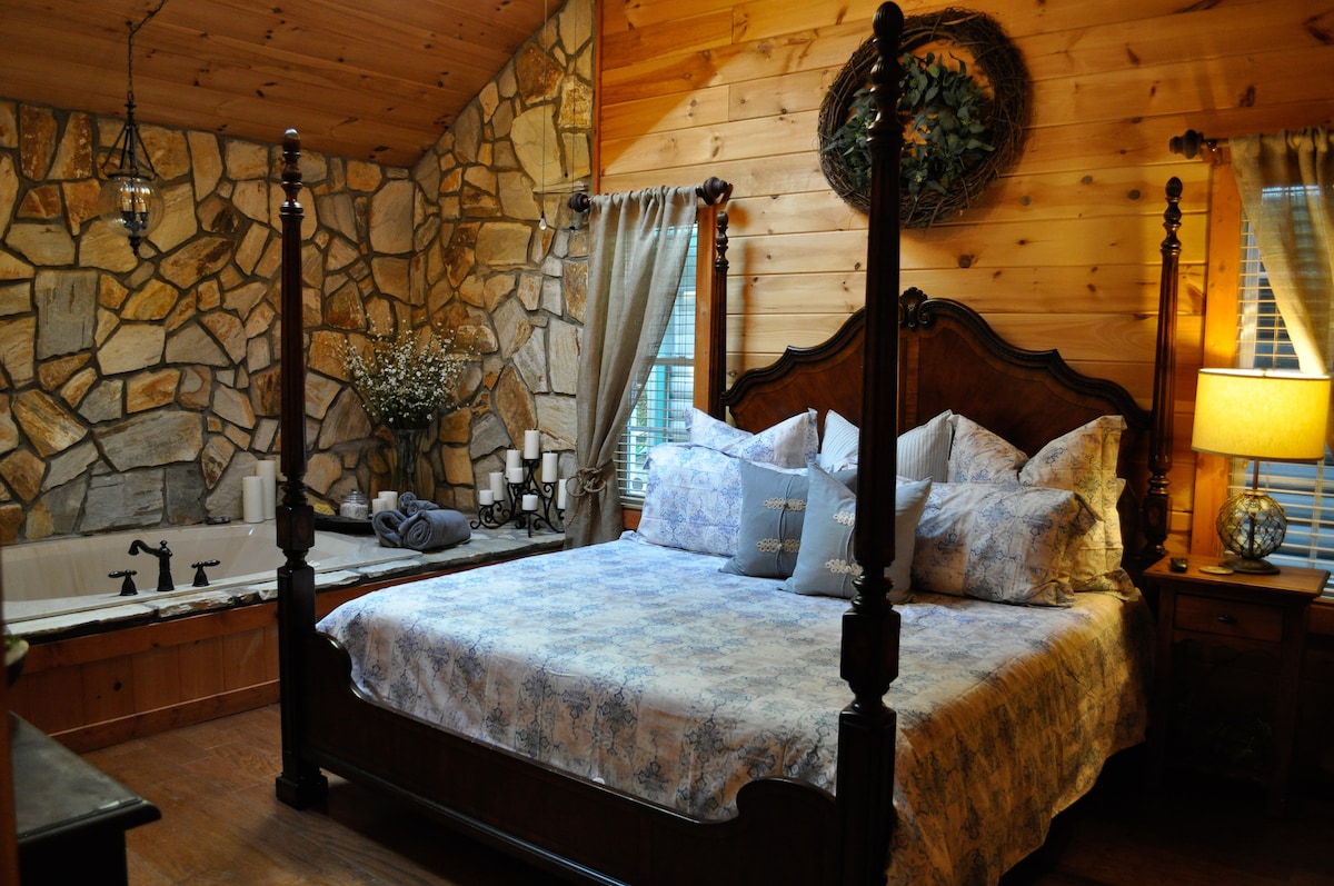 Lugar perfecto para una escapada. Cerca de todo, a una milla del centro de la ciudad. Estancia romántica para luna de miel o viaje de aniversario. Nueva bañera de hidromasaje con pantallas de privacidad opcionales en el porche. Se admiten perros. Rodeada de un sinfín de actividades, esta cabaña es un lugar ideal para volver y relajarse después de una larga jornada de trabajo. Relájate, ponte cómodo y ve una película. Tanto si estás en Helen para hacer turismo y explorar como para una escapada romántica en el interior, ¡este es el lugar perfecto!