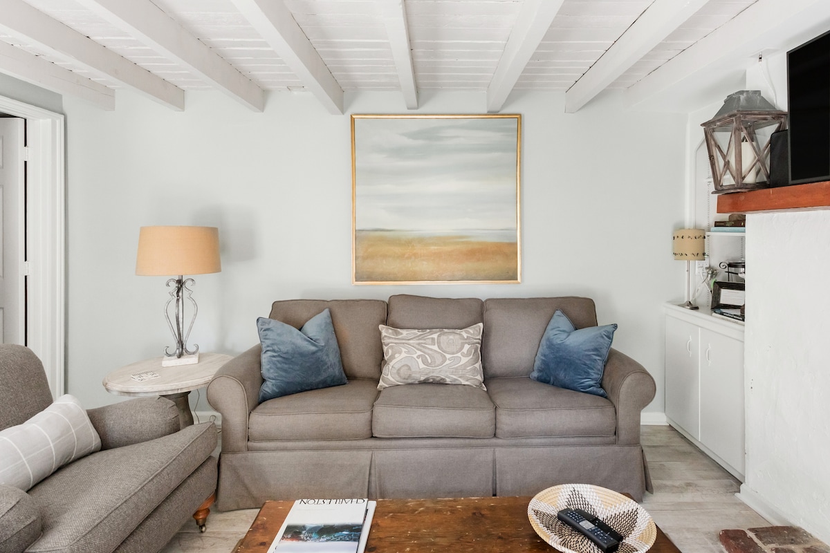 Relax in this separate guest home nestled in a well-established Lowcountry neighborhood. The ‘treehouse’ has an open-plan design with vaulted notched board ceilings, creating a feeling of light and space, with elegant furnishings throughout. The well-equipped kitchen and grill on the porch encourages intimate home cooking. We lived in this space before we moved into the main house, so we can attest to it being comfortable, and well maintained.