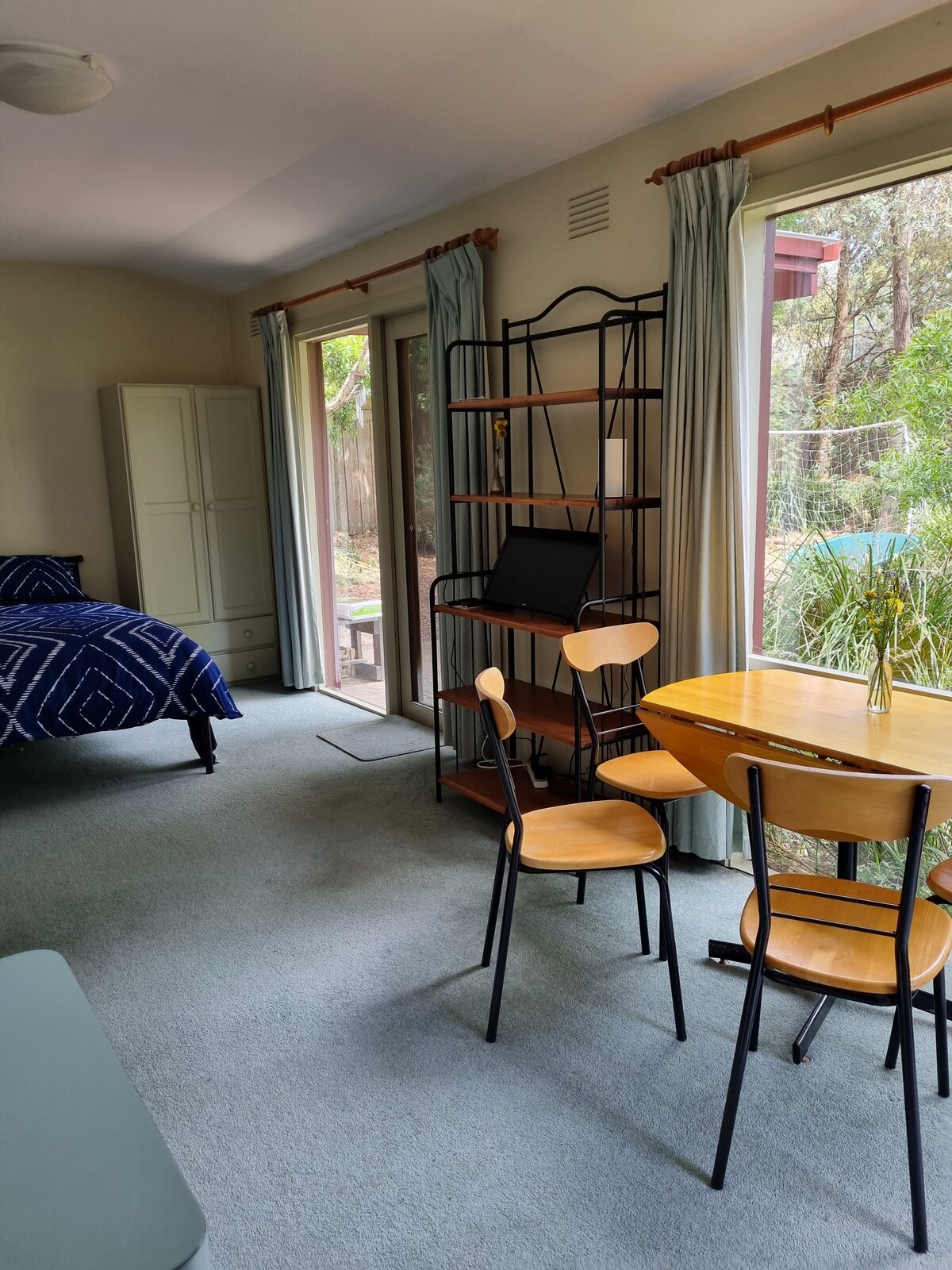Elegante casa de huéspedes independiente de 1 dormitorio más estudio/cama individual. Ubicación tranquila, segura y céntrica. Amplio aparcamiento en la calle sin límite de tiempo. Exuberantes jardines bien cuidados. Campus universitarios de Monash, Deakin y Holmesglen a 5-15 minutos en coche. Tendedero cubierto, conexión por cable Ethernet y wifi para ordenadores. Centro comercial Chadstone a 10 minutos. Cafeterías, restaurantes y tiendas de Oakleigh a 10 minutos. Tiendas locales, cafeterías, restaurantes, oficina de correos, supermercado a 1 minuto en coche.