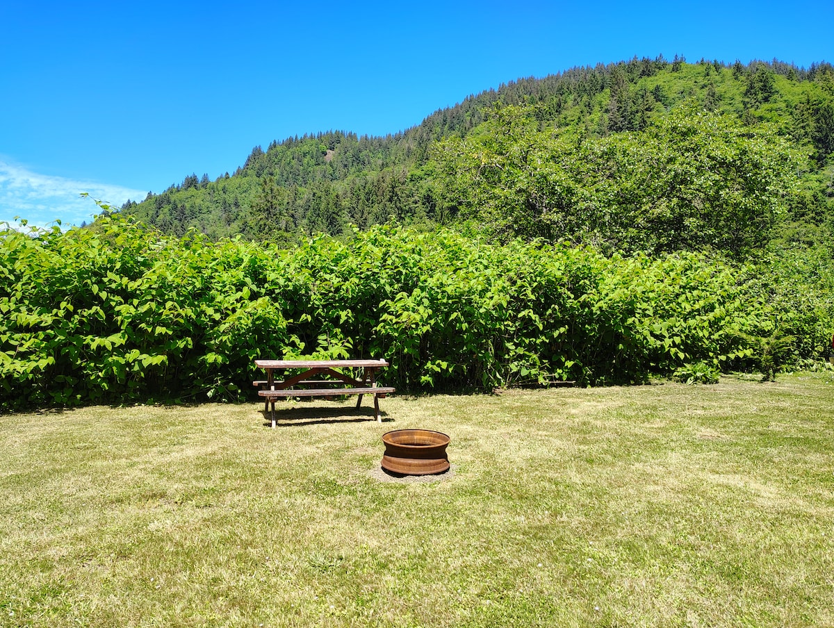 Reconnect with nature at this unforgettable retreat. Nestled beside a flowing river and surrounded by Oregon’s stunning forests, your campsite offers the perfect setting to unwind. Listen to the soothing sounds of the water, enjoy a crackling fire, and take in the serene views—this is the escape you didn’t know you needed. Conveniently located just 5 miles from town, the site is easy to access while still providing a scenic and immersive outdoor experience. Note: No electricity in tent sites.