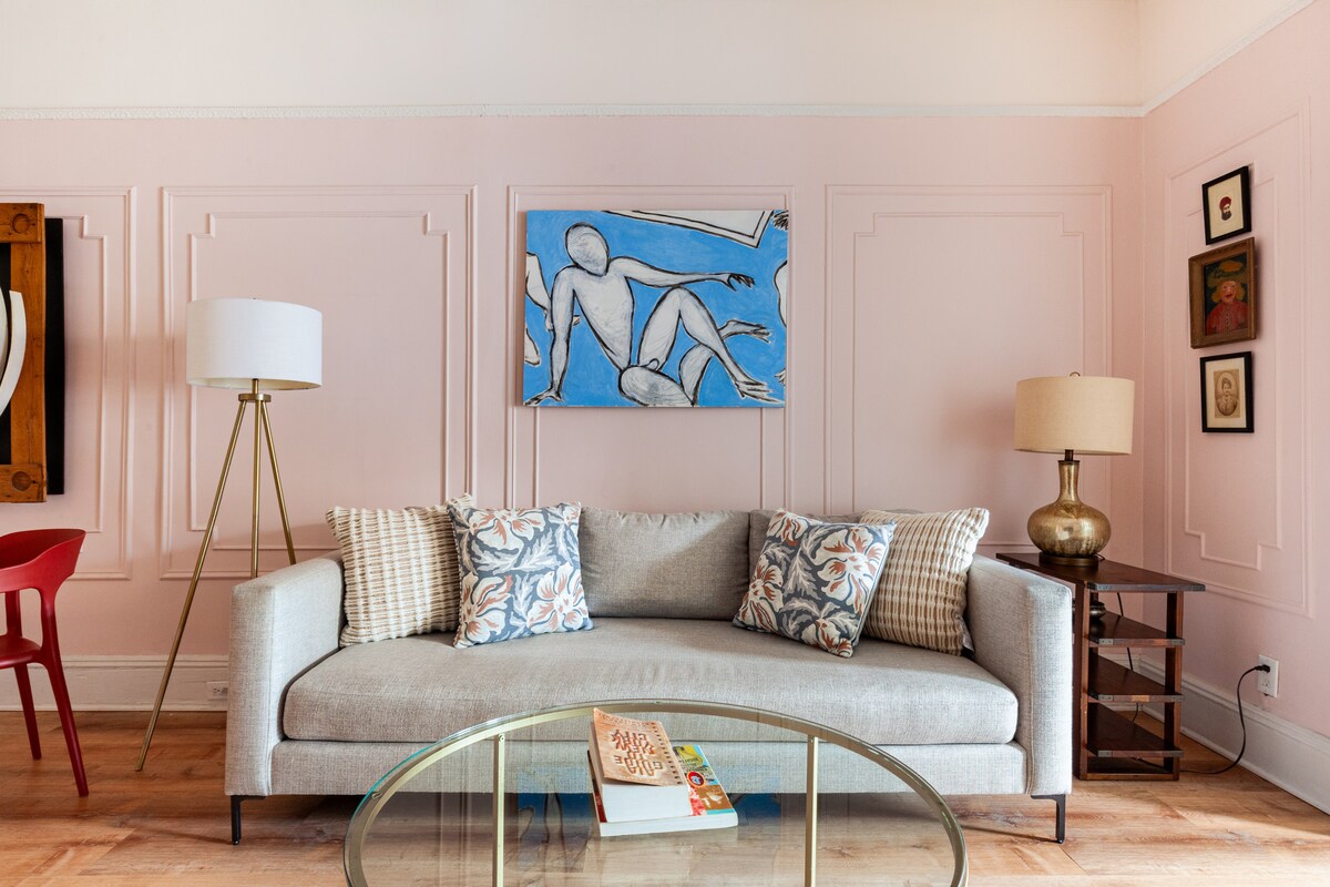Bienvenido a tu lujosa suite privada de 65 metros cuadrados meticulosamente diseñada en una histórica piedra rojiza de Brooklyn. Como se indica en «59 Best Airbnb Stays Across the US 2023» de Architectural Digest, el espacio logra el equilibrio perfecto entre estilo y comodidad. Diseñada por el reconocido diseñador de interiores Jarret Yoshida, la suite presenta una mezcla cuidadosa de muebles contemporáneos, de mediados de siglo, vintage y antiguos, creando un ambiente único y vibrante.