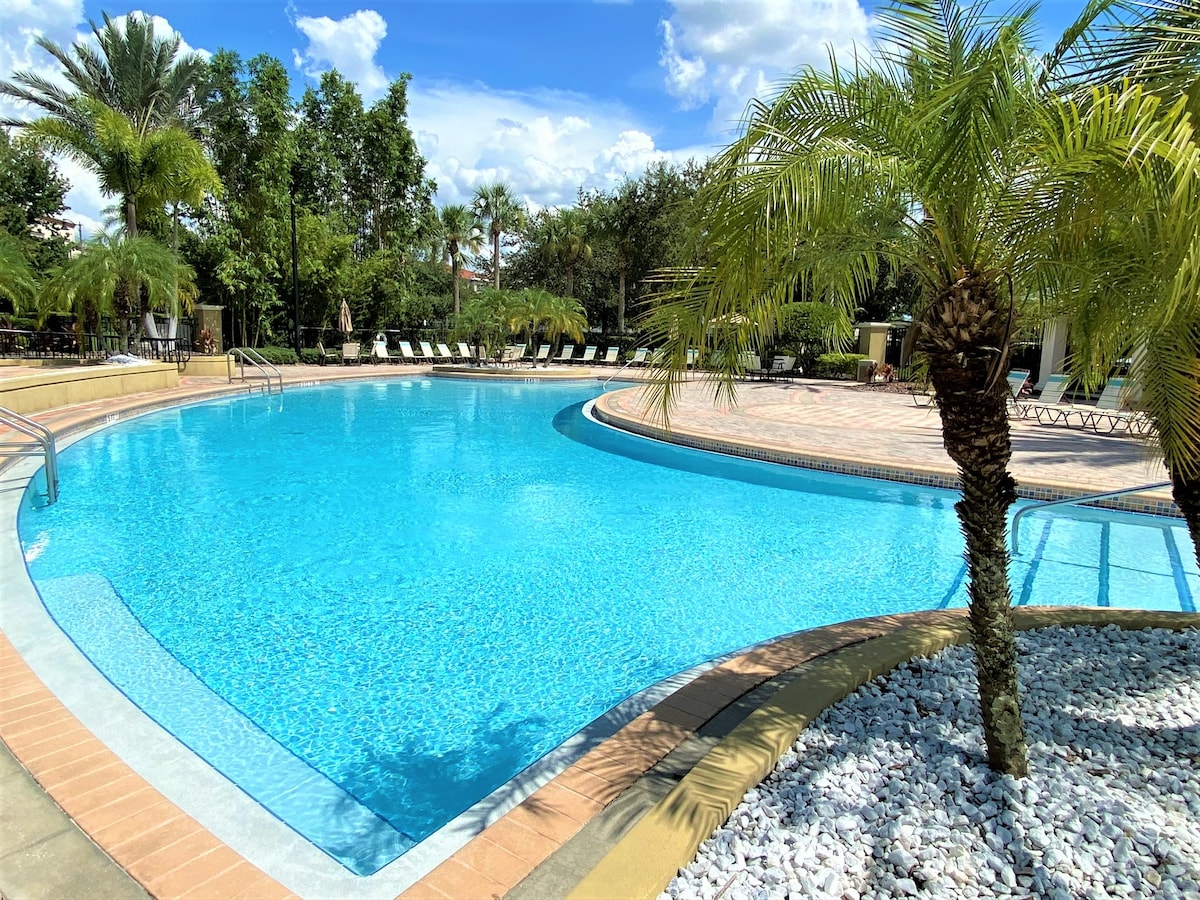 Hermoso apartamento actualizado de 3 dormitorios y 2 baños completos, capacidad para 8 personas; a solo 200 pies de la casa club. Ubicado cerca de Universal Studios, Sea World y a poca distancia a pie del centro de convenciones del condado de Orange y de International Drive. Para tu comodidad, ofrecemos un carro de valet para las maletas pesadas y cerradura electrónica para facilitar el acceso. Nuestra casa club tiene una gran bañera de hidromasaje, 2 piscinas (1 grande para adultos y 1 grande para niños), las piscinas están climatizadas durante el invierno, bar tiki junto a la piscina, sala de fitness, comunidad cerrada. .