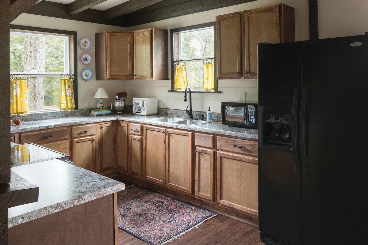 «The Fox Den» fue diseñada solo para parejas... acurrucarse junto a la chimenea o sumergirse en un jacuzzi en un porche cerrado, esta exclusiva cabaña temática de los años 70 en el bosque, lejos del estrés y el ruido de la vida cotidiana. Ya sea que estés celebrando algo o simplemente buscando una excusa para venir a buscar aislamiento y tranquilidad, la guarida del zorro es el lugar ideal para reservar tu escapada romántica, ubicada a 2 horas al sur de St. Louis, cerca del lago Wappapello. Se proporcionan artículos de desayuno para que los huéspedes cocinen, incluidos huevos frescos de granja.