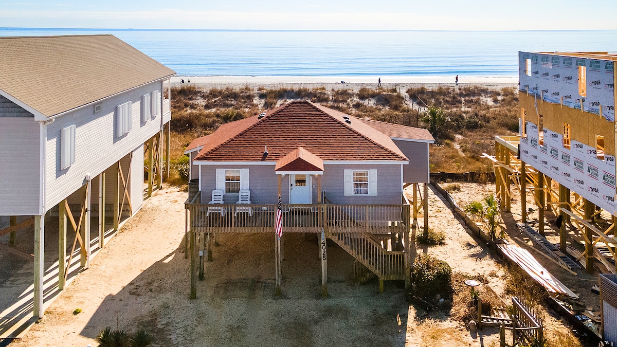 Disfruta de una escapada familiar perfecta frente al mar en West Beach, Oak Island. Esta unidad de primer nivel de nuestra casa de playa tiene entrada independiente, dos dormitorios, un baño y capacidad para seis personas. La cocina está totalmente equipada con ollas, sartenes, utensilios, nevera de tamaño completo, microondas, estufa/horno y lavavajillas. Disfruta de amaneceres y atardeceres en la enorme terraza mientras observas las olas y los delfines ocasionales. Si tus fechas no están disponibles, consulta la disponibilidad de nuestra unidad de segundo nivel en www.airbnb.com/h/oki2