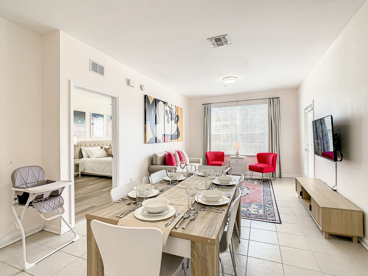 ¡Bienvenido a tus vacaciones soñadas! Nuestro condominio recién remodelado de 2 habitaciones y 2 baños está a menos de 7 millas de Disney, en una comunidad cerrada y segura. Perfecto para familias, tiene capacidad para 6 personas con 4 camas acogedoras y una cocina completamente actualizada. Disfruta de comodidades como piscina, jacuzzi, gimnasio y sala de juegos. ¡El lugar perfecto para tu aventura, ya sea para relajarte o disfrutar del parque! ¡Reserva ahora!