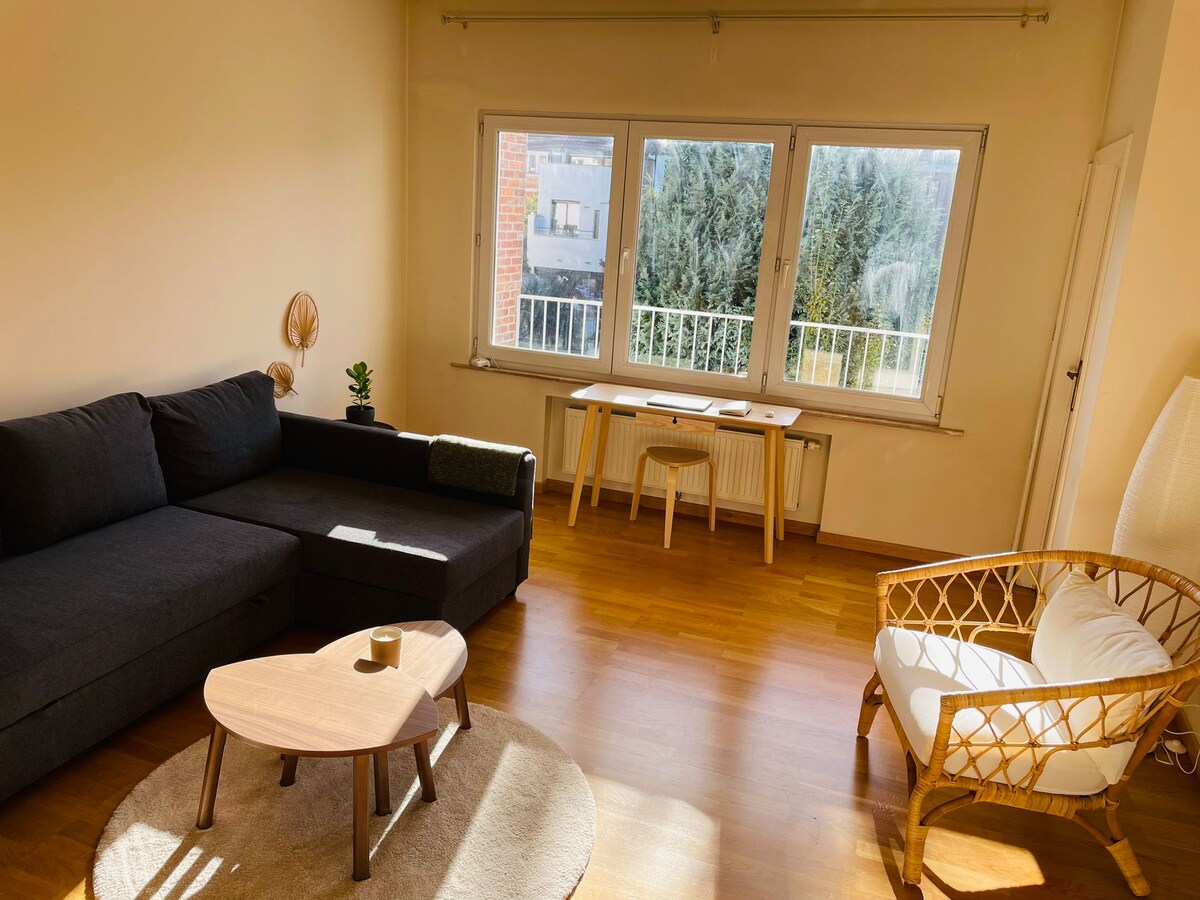 ¿Quiere disfrutar de Bruselas, pero también de un nido tranquilo y agradable? ¡Bienvenido a nuestra casa! Cerca de las instituciones europeas, en conexión directa con el centro de la ciudad. A 2 minutos del tranvía, a 10 minutos del metro, se encuentra un apartamento independiente, en la planta baja de nuestra casa familiar. Tranquilidad en la ciudad, jardín y biblioteca: ¡toda una forma de vida! Te invito a que disfrutes del hecho de no estar en casa: es diferente, y eso es lo que hace que un viaje tenga encanto ;-)