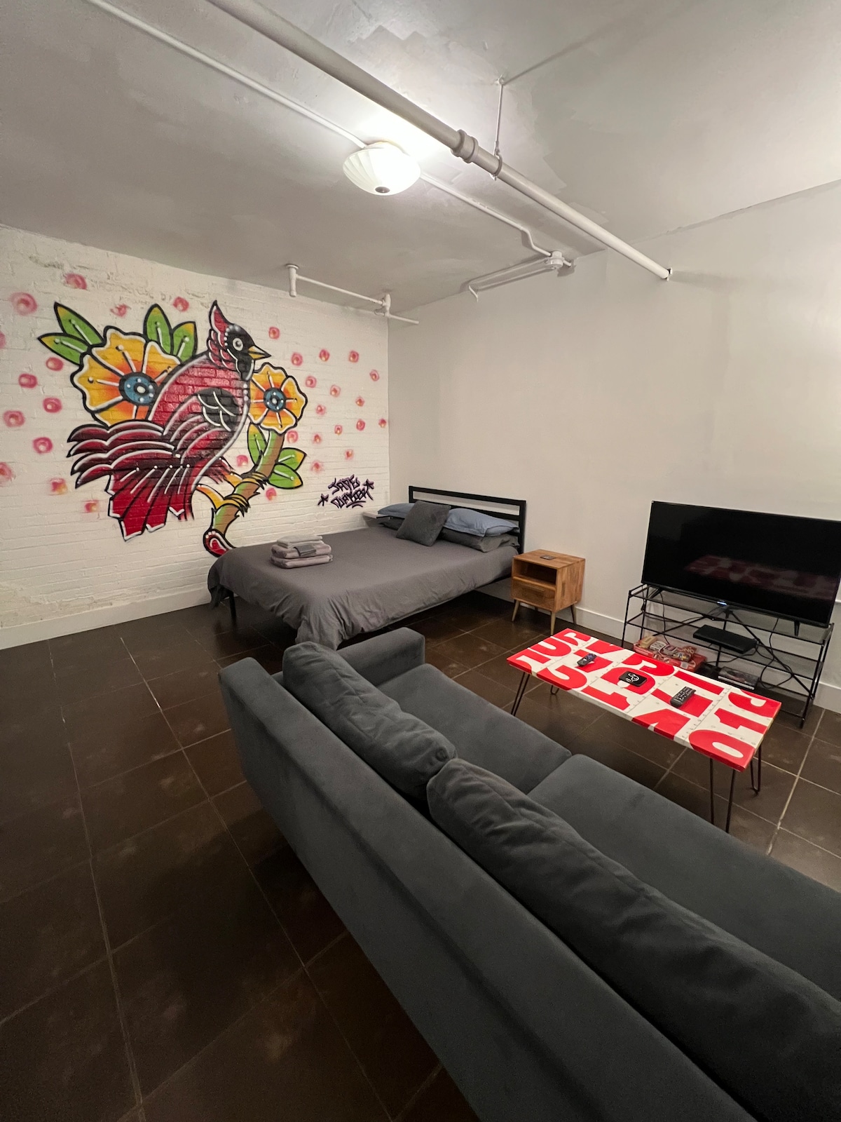 Si buscas una escapada a una montaña aislada, este no es el lugar ideal, pero si quieres estar en el corazón de las festividades del centro de la ciudad, ¡nuestro loft es el lugar perfecto para ti! Nuestro loft tiene arte local, un pequeño balcón, techos altos y ladrillo visto. Estamos justo en el centro de toda la acción del centro de la ciudad. Estás literalmente a unos pasos de increíbles cervezas artesanales, comida galardonada y música regional. El centro de la ciudad es animado, especialmente por la noche, donde puedes pasar el rato y ver una banda de funk local o dirigirte al círculo de tambores, luego dormir hasta tarde y bajar a darte un masaje. Loft de lujo en el centro de la ciudad en el segundo piso de un histórico edificio de ladrillo. Balcón con vistas a College St. Cocina totalmente equipada. Cafetera Se proporciona café y té. Televisión de alta definición con Sling TV, Netflix y canales locales. Altavoz inalámbrico. Sofá cama con colchón Sealy Posturepedic Cama tamaño queen con colchón de espuma viscoelástica y almohadas. Lavadora y secadora Vivimos en Asheville, cerca, pero no vivimos en el edificio, pero estaremos encantados de responder cualquier pregunta que tengas. La práctica ubicación céntrica de la casa pone la vibrante cultura de Asheville justo fuera de la puerta. Cena en restaurantes y panaderías galardonados, prueba algunas bebidas nuevas en las cervecerías locales y disfruta de la enérgica vida nocturna de la zona. Estás cerca de varias plazas de aparcamiento. No necesitarás conducir a menos que vayas al River Arts District, a Biltmore House o a hacer senderismo en las montañas. Ubicado entre Lexington Ave y Haywood St, el loft está a 1 minuto a pie de Pack Square y Biltmore Ave y a 3 minutos a pie de Grove Arcade y Wall St. Hay taxis y Uber todo el tiempo. Se admiten perros con aprobación previa. El edificio dispone de ascensor. La entrada al edificio tiene acceso seguro con código de teclado. El dormitorio está en el interior del apartamento con puertas correderas para separar la habitación de la sala de estar y las ventanas. El centro de Asheville puede ser ruidoso y la música se puede escuchar la mayoría de las noches. Tenemos una máquina de ruido blanco y tapones para los oídos para minimizar cualquier interrupción. Sin embargo, puede ser ruidoso para los huéspedes que duermen en el sofá cama de la sala de estar. No podemos emitir reembolsos por el ruido que emana del barrio alrededor del apartamento.