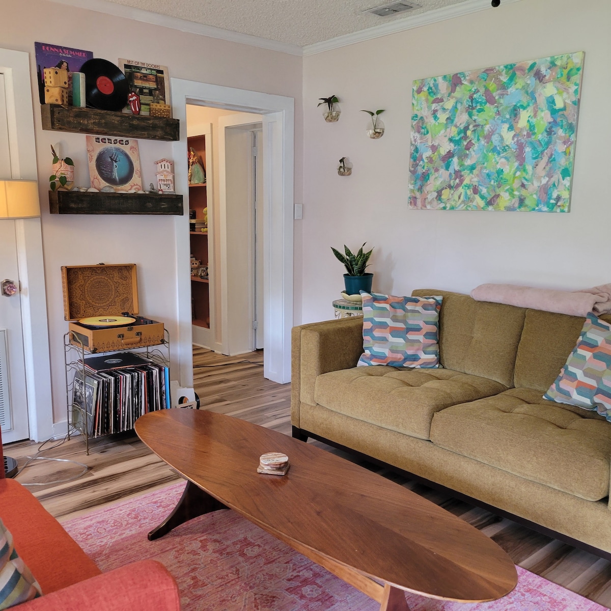 Con una ubicación céntrica en la hermosa costa de Cape Fear, PalmTreeHouse es un encantador apartamento de garaje de mediados de siglo con temática náutica, ubicado entre palmeras y un jardín zen privado, con fácil acceso al paseo marítimo de Wilmington y a las playas. Como extensión del apartamento de la planta baja PalmTreeHut, de temática automovilística/industrial, puedes reservar la PalmTreeHouse simultáneamente para grupos de cuatro o ir solo en tu excursión a Wilmington.