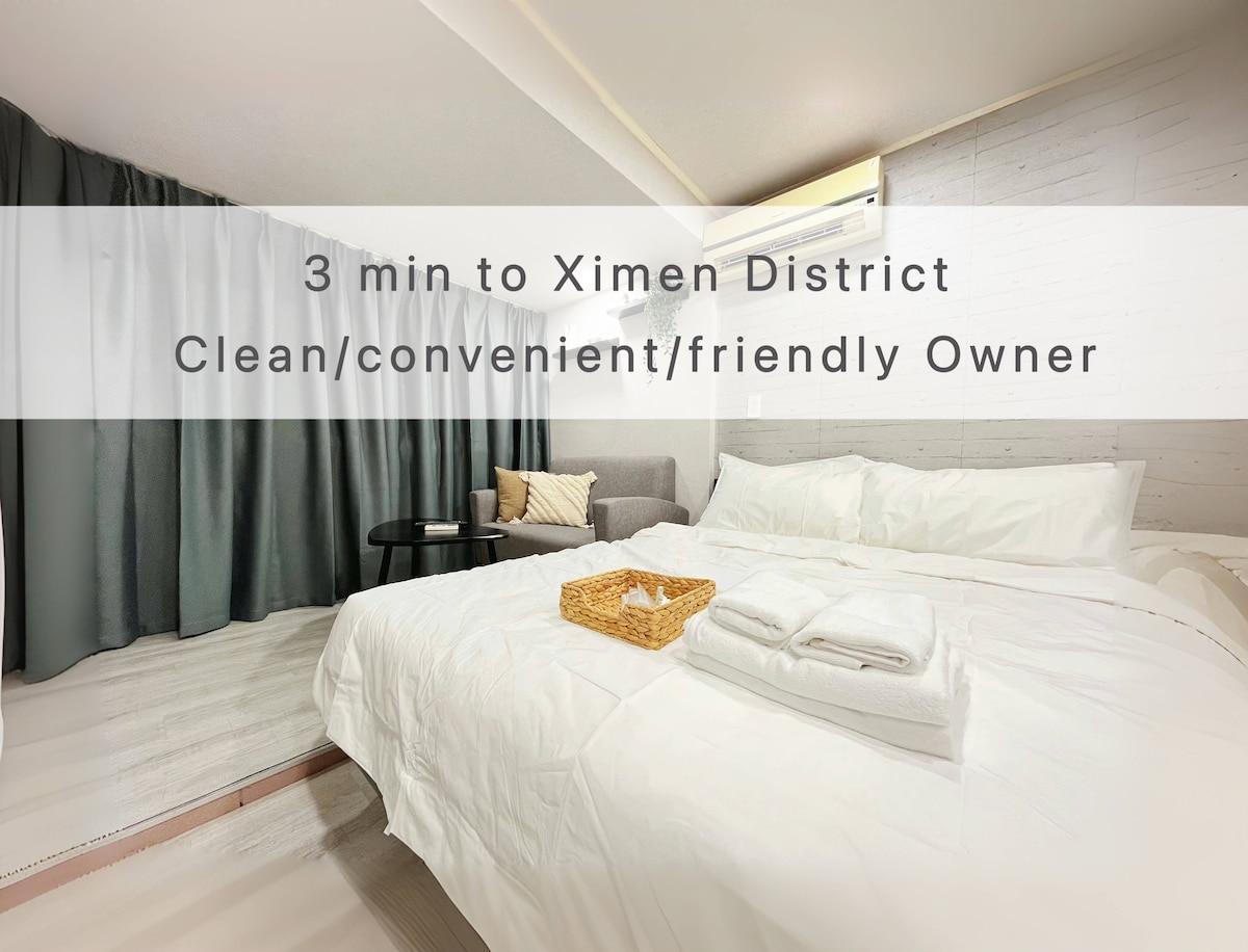 Quédate en esta encantadora casa.En el bullicioso Ximending, déjame ofrecerte un espacio para vivir cómodamente A diez minutos a pie de la estación de Ximen Edificio con ascensor El alojamiento privado no es compartido - Cama tamaño queen. Televisión inteligente de 50 pulgadas yt nf Proporciona toallas de baño, champú, gel de ducha, secador de pelo y mucho más ¡No se proporciona pasta de dientes! Ten en cuenta que la reservación de la propiedad debe enviar una foto del pasaporte como registro. No cooperes. Por favor, no reserves, gracias. No hay recepción taiwanesa