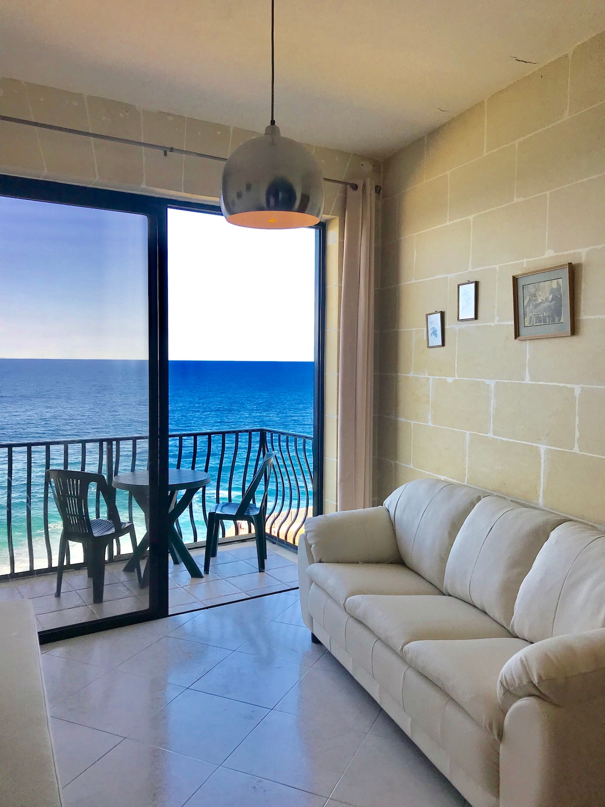 Apartamento tipo estudio en primera línea de playa con vistas al mar en Marsalforn