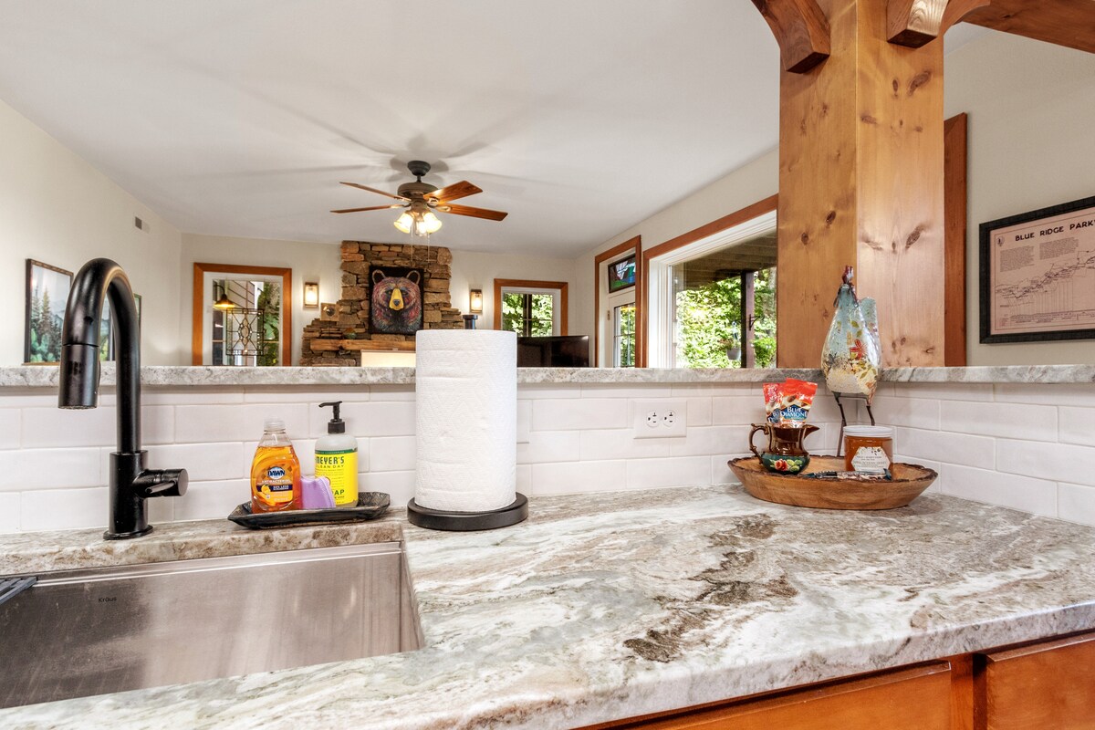 Privacidad en la cima de la montaña, pero a solo 5 millas de la ciudad. A casi 4.000 pies de altura, aprovecha la comodidad, la serenidad y las impresionantes vistas de esta cabaña privada y tranquila en la montaña. Temperaturas suaves de verano, el Blue Ridge Parkway está cerca, y Asheville está a menos de una hora de distancia. ¡Internet finalmente ha sido restaurado! Después del huracán Helene, estuvo fuera de servicio durante un año, pero ya está de nuevo en funcionamiento.