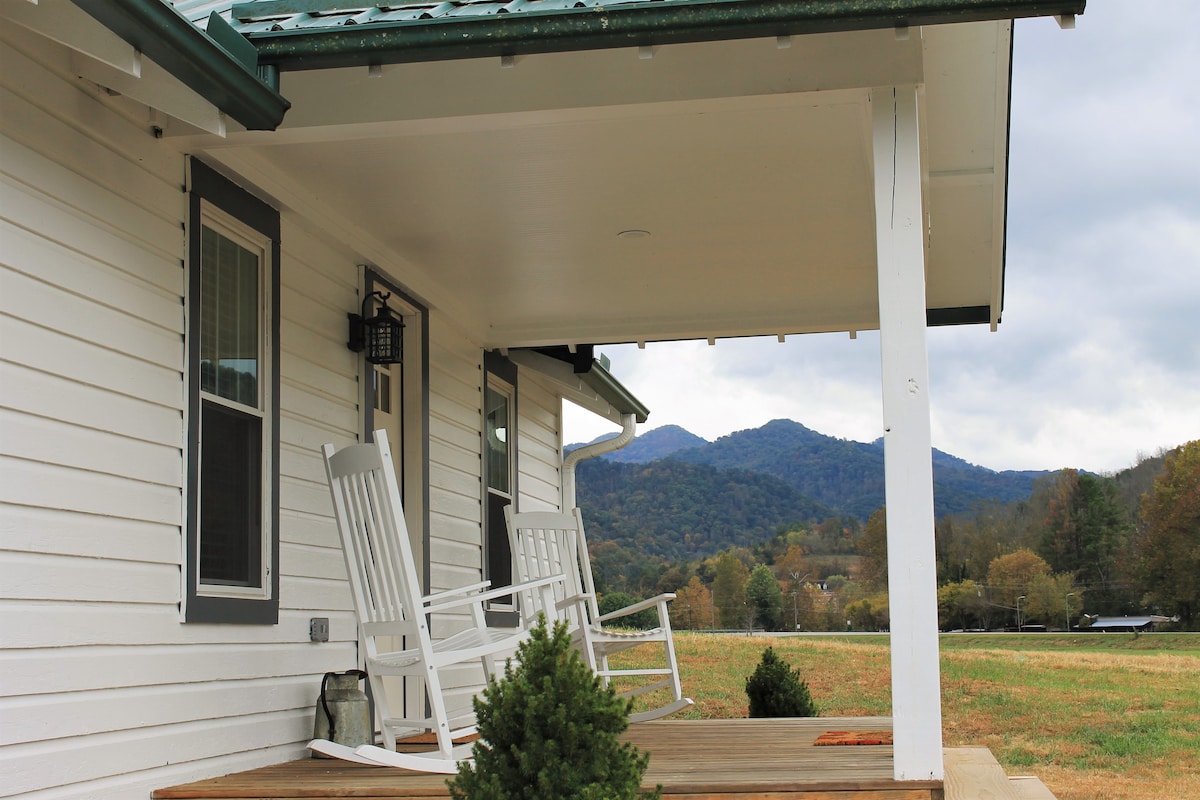 Casa de campo histórica en una granja en funcionamiento de 100 acres. A solo 10 minutos del centro de Weaverville y a 20 minutos del centro de Asheville. Esta casa completamente renovada está rodeada de acres de ganado de pastoreo y campos de heno. La casa tiene una entrada ancha y de fácil acceso y hermosas puestas de sol de montaña desde el porche delantero.