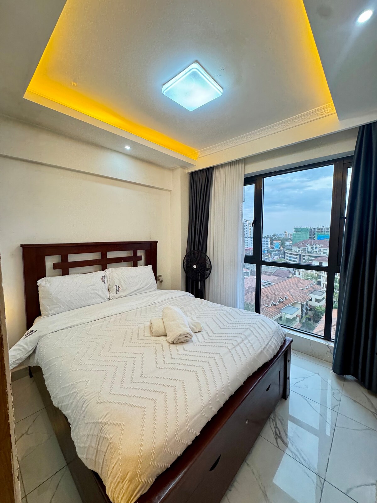 Alójate en un elegante y seguro apartamento de 1 dormitorio en la planta 17 con vistas panorámicas de la ciudad. Ubicado en Kilimani, cerca de Yaya Centre, Westlands y CBD, este acogedor espacio cuenta con wifi rápido, una televisión inteligente con Netflix y Prime, cocina bien equipada, cómoda zona de comedor/trabajo y una cama ortopédica. Disfruta de acceso a la piscina, zona de juegos para niños y salón para residentes. Ideal para trabajar o relajarse: tranquilo, bien comunicado y con todo a mano.