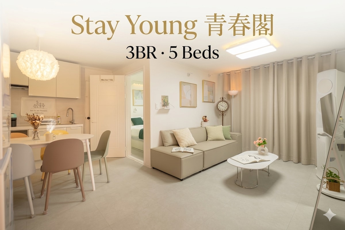 Stay Young / Romance en tonos pastel / A 3 minutos de la estación Yeongdeungpo-gucheong / Habitación 3, 5 camas para 8 personas / Cerca de Hongdae y Myeong-dong, KSPO