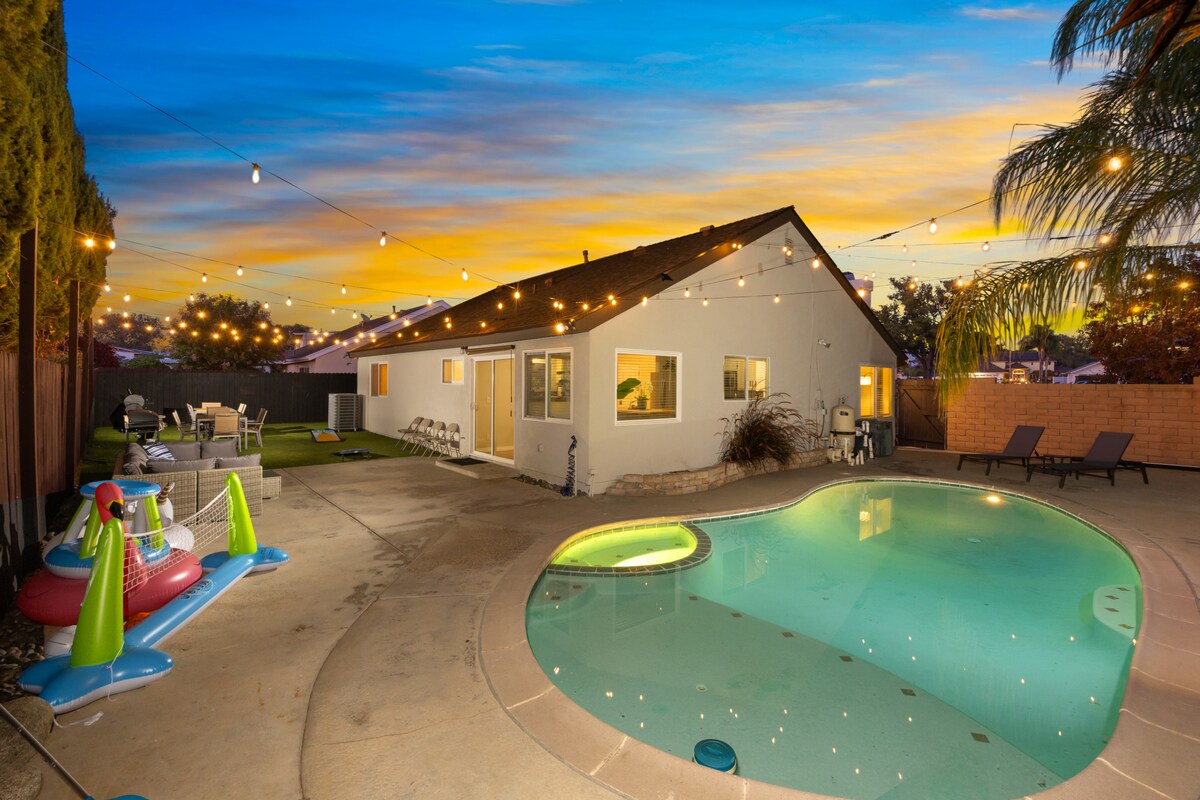 Relax with the whole family at your Peaceful Poolside Oasis. Cul de sac street and an easy 20 minutes to Disneyland, this 2 story house gives you many areas to relax day or night. Pool, Spa, Firepit, swings, hammocks, Balcony, Piano, Toys and Games. Nearby Parks, 1 minute to grocery store, freeway close, Reverse Osmosis drinking water, kuerig, laundry inside, outdoor shower, bbq, fireplaces... perfect for a large family! Smart tv has all the apps like Netflix, YouTubeTV PrimeVideo