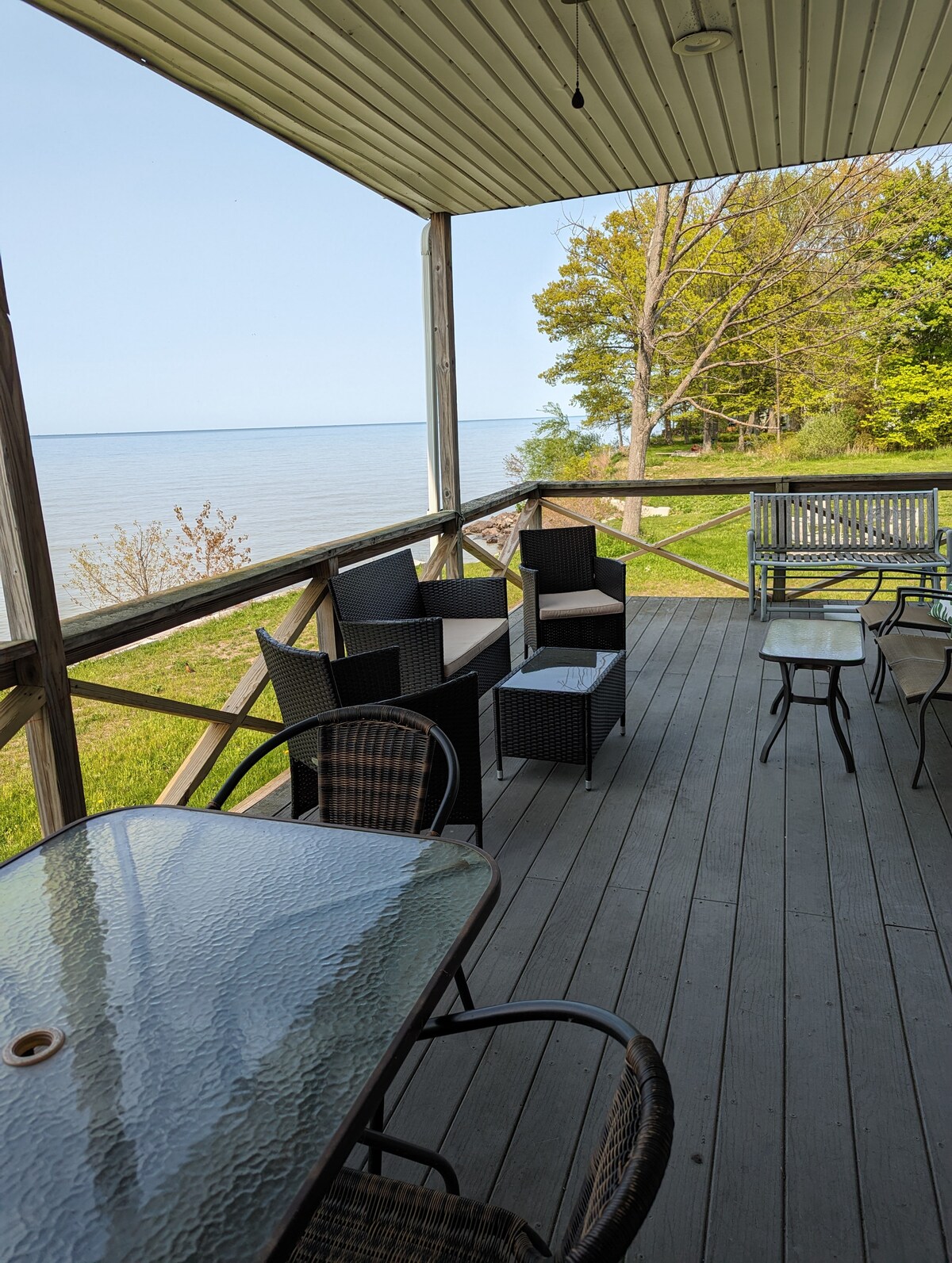 Somos una propiedad frente al lago ubicada directamente en el lago Ontario en Wilson NY que te ofrece hermosas vistas, impresionantes puestas de sol y un lugar tranquilo para relajarte. Ofrecemos una cómoda casa de 2 dormitorios y 2 baños con 2 salas de estar, una cocina totalmente equipada y un hermoso porche delantero que te invita a relajarte y desconectar. ¡Hay mucho que disfrutar en nuestra región de Niágara y nuestra casa está en medio de todo! Cerca de bodegas, restaurantes, tiendas, rutas de ciclismo y senderismo, natación, kayak y pesca.