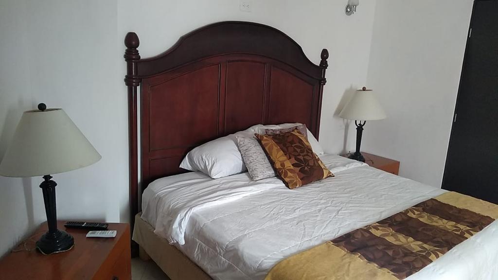 Ubicado en planta alta el Depto Cuenta con sofácama en la sala, un comedor con cuatro sillas, la cocina cuenta con refrigerador, estufa, platos, vasos, tazas, cubiertos, jabón para platos, horno de microondas, utensilios de cocina, sartén, etc; en la habitación cuenta con una cama matrimonial con su juego de sábanas, un buró, televisión con Pluto TV, aire acondicionado y un baño completo con closet vestidor.