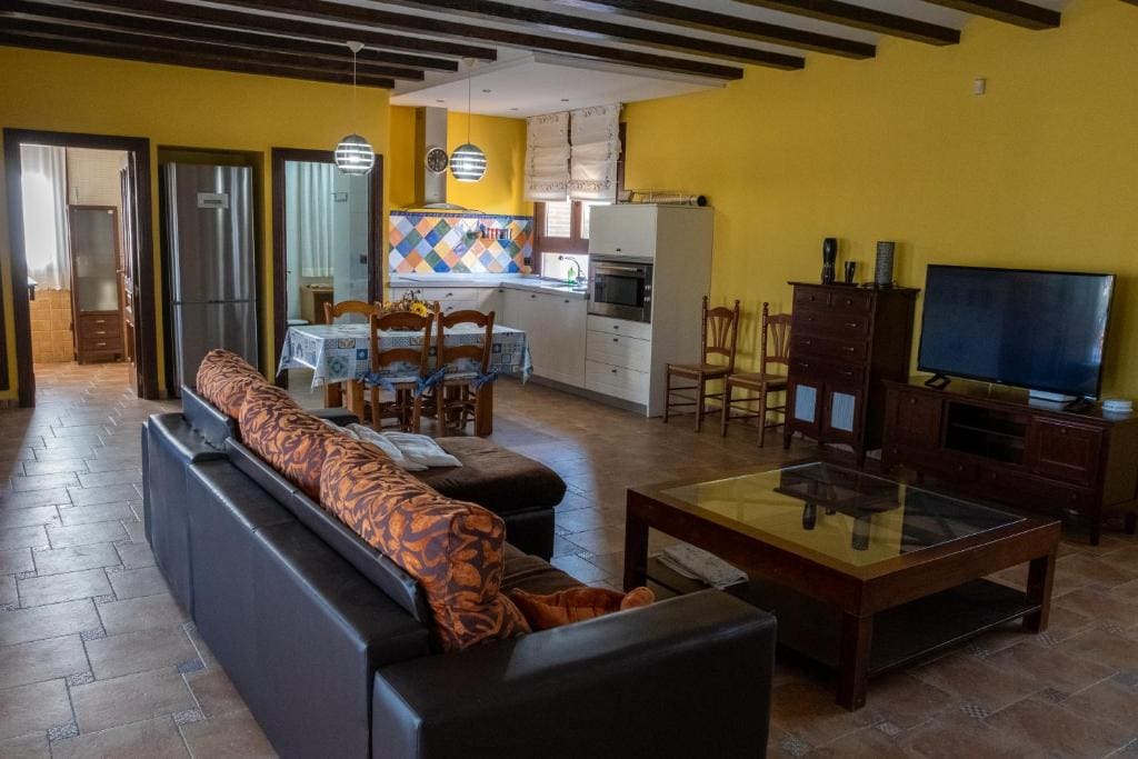 La Casita tiene un estilo manchego con toques mediterráneos. Muy fresca en verano y cálida en invierno. Es totalmente independiente y separada de la casa principal, en el medio del jardín a lado de la piscina, disponible en temporada de verano, de la casa a disposición de los huéspedes. Tiene un dormitorio principal y una sala de estar con sofá cama, fogones vitrocerámica, frigorífico, congelador, microondas y lavadora.