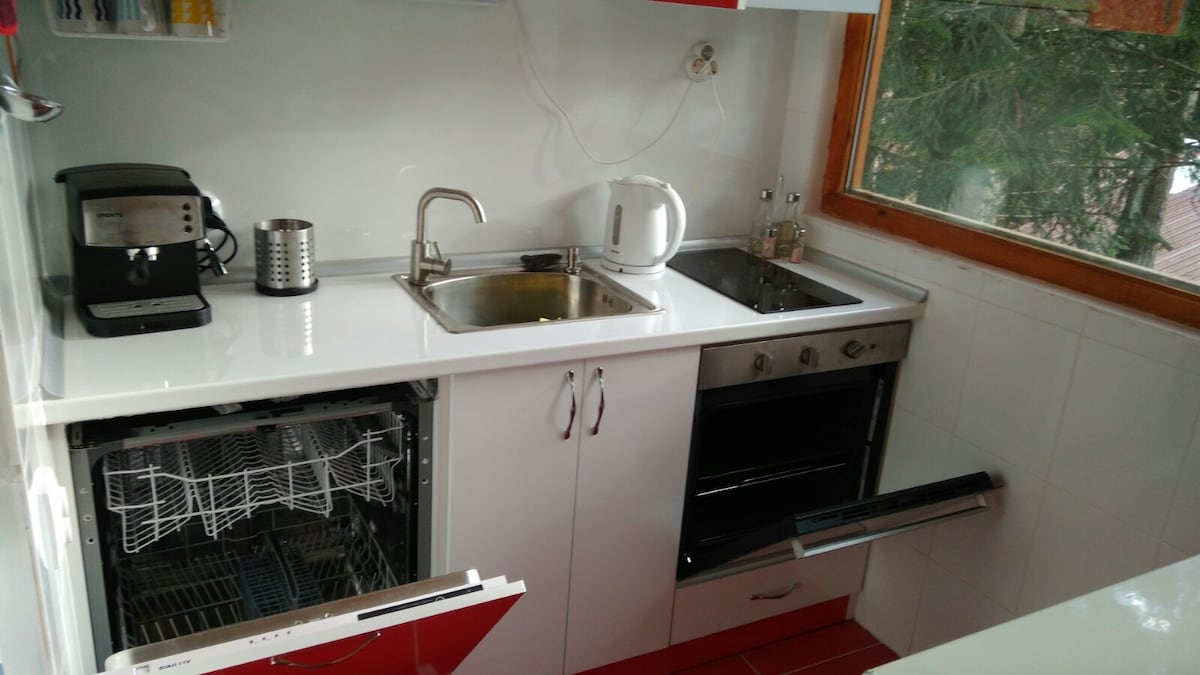Lugar encantador, tranquilo y acogedor. Apartamento situado en el centro de la ciudad, pero también en el bosque. Control inteligente del equipo para la mayor comodidad posible. Este lugar puede garantizarte las vacaciones que deseas. Cuenta con dos habitaciones privadas, un baño, una terraza y un pequeño patio. La cocina cuenta con todos los elementos esenciales para estancias tanto de corto como de largo plazo. Un sendero ecológico conduce a algunos de los lugares más bonitos de la ciudad.