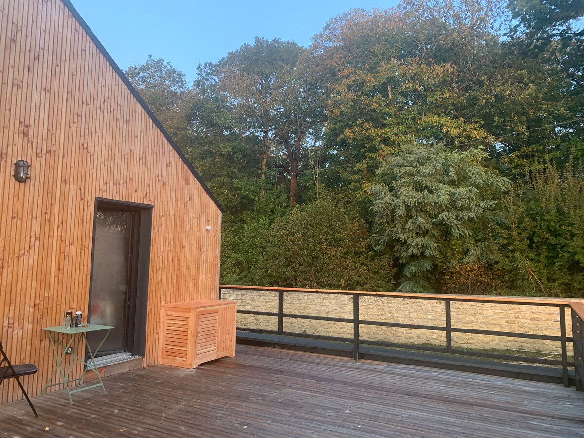 Si desea tomarse un descanso relajante mientras disfruta de la belleza de la región, ¡nuestro apartamento con sauna, terraza y acceso privado le espera! Parte independiente de un pabellón individual, La Passerelle está idealmente situado en un entorno tranquilo cerca de los paseos a orillas del Sena (800 m), el centro de la ciudad (2 km) y Giverny (6 km). En la estación de tren SNCF (a 2 km) tendrá la posibilidad de alquilar bicicletas y patinetes eléctricos o incluso tomar el pequeño tren turístico Vernon/Giverny.