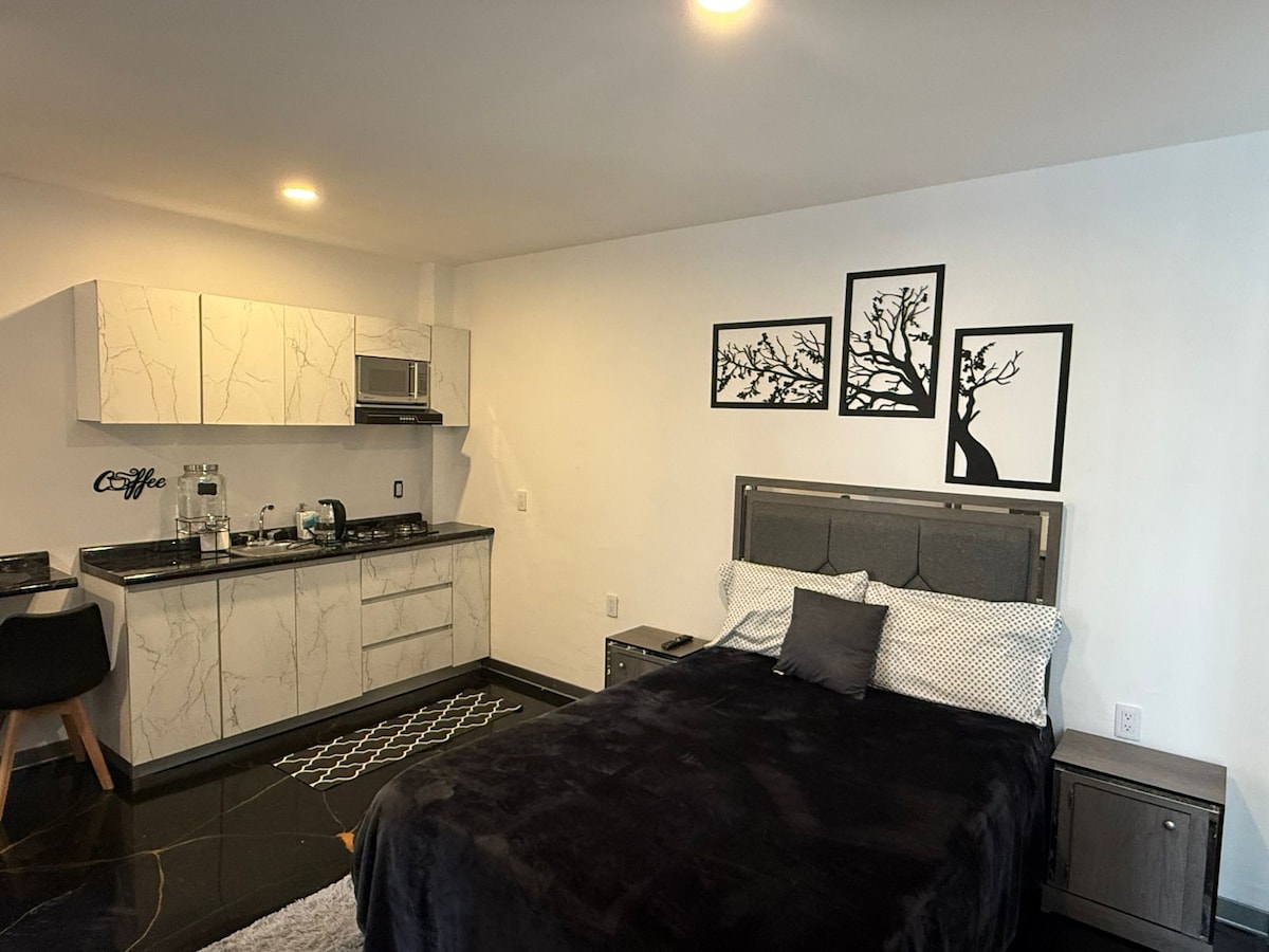 cuenta con todas las amenidades para que tengas una excelente y tranquila estadía, tales como cochera dentro del edificio, agua caliente, WiFi, utensilios de cocina, terraza,etc. Además de contar con atención a cliente amable, paciente, pronta y servicial
