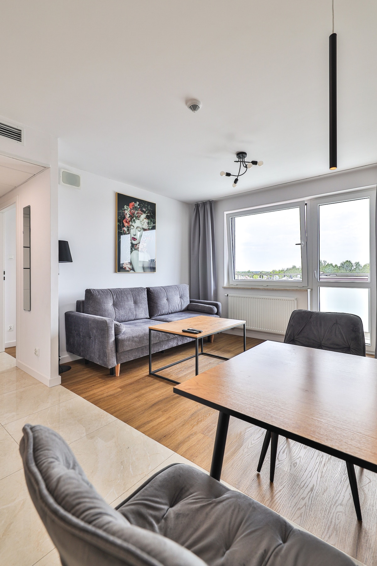 Apartamento cómodo y totalmente equipado en un edificio nuevo. Sala de estar con cocina abierta dividida en comedor y sala de estar. El dormitorio tiene una cama grande y un armario espacioso. También hay un armario como espacio de almacenamiento adicional. En la zona hay tiendas, restaurantes y cafeterías. Equipamiento: aire acondicionado, cafetera, hervidor de agua, plancha, tabla de planchar, lavadora Cómo llegar desde el aeropuerto de Chopin 20 minutos en taxi 50 minutos en transporte público desde el aeropuerto de Modlin 50 minutos en taxi 120 minutos en transporte público