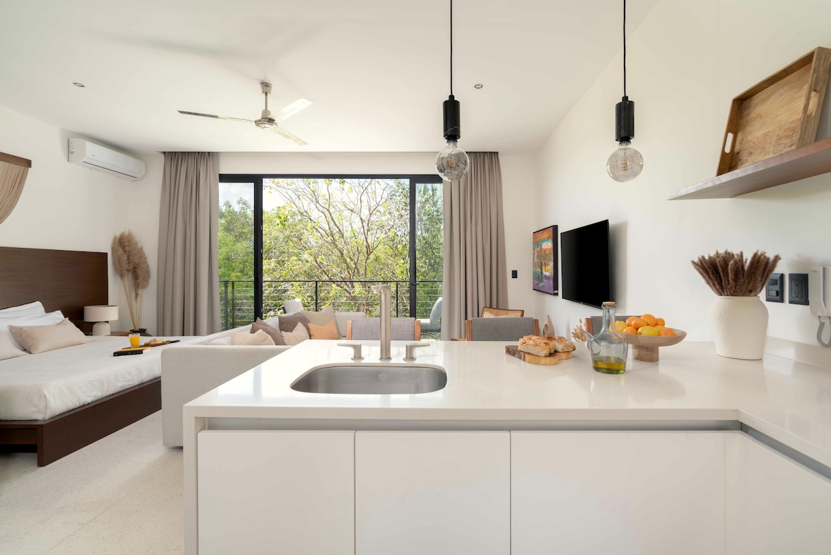 Descubre tu escapada elevada en la jungla en este elegante departamento de dos recámaras en Siwa Tulum, diseñado para viajeros que buscan espacio, privacidad y comodidad. A solo minutos de las playas de Tulum y de su vibrante zona urbana. Rodeada de exuberante vegetación, esta residencia cuidadosamente diseñada combina arquitectura moderna con la naturaleza, ofreciendo tu propia alberca profunda privada, terraza en la azotea y área de asador—perfectas para días de relajación y noches inolvidable