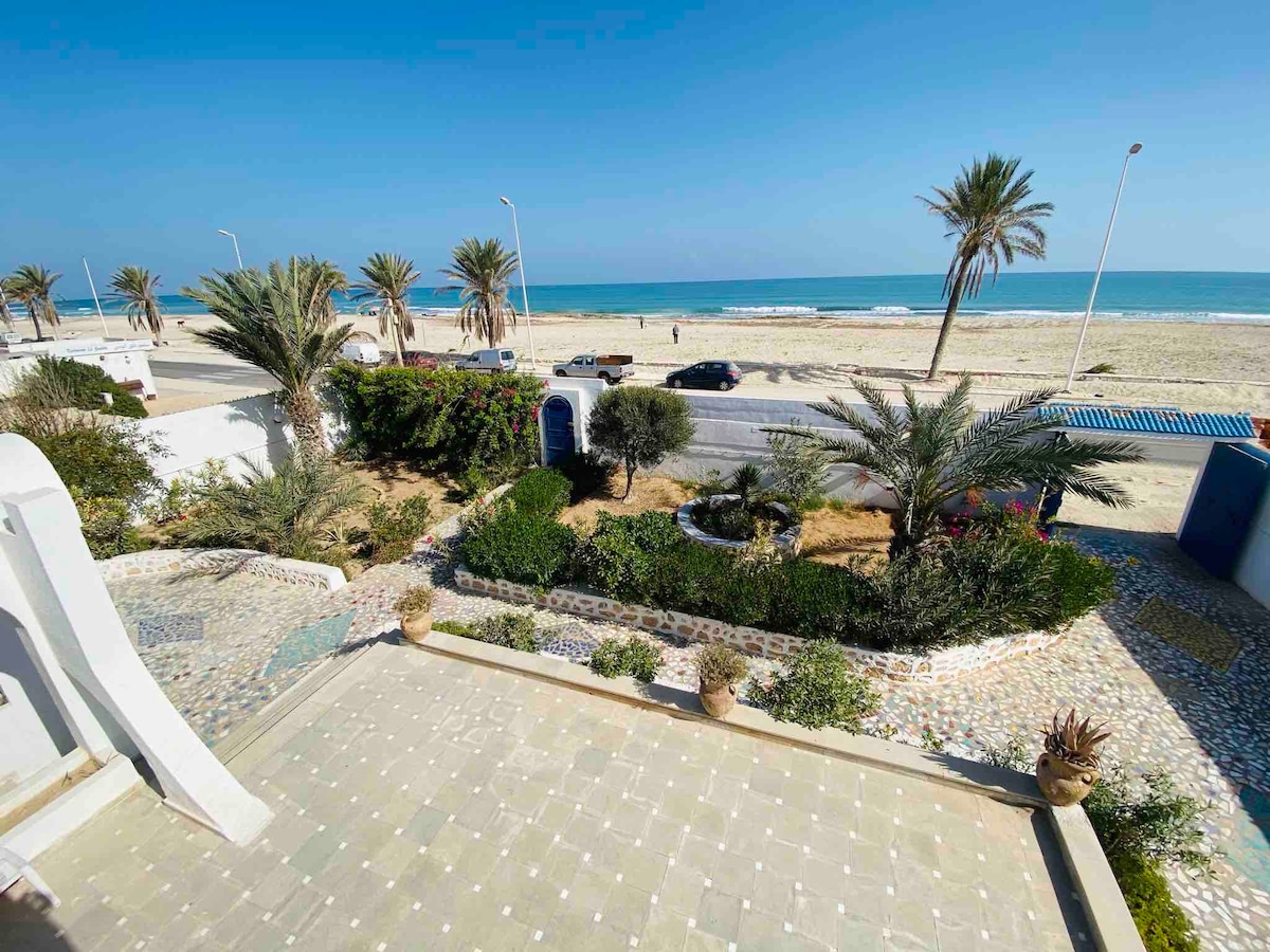 Relájese en este alojamiento único y tranquilo en primera posición , junto al mar con los pies en el agua sin vecinos Con total tranquilidad disfrutará del mar mediterráneo,en esta espaciosa villa hay 4 dormitorios y bien equipados con aire acondicionado cerca de los restaurantes Pasará una estancia maravillosa Actividades acuáticas,moto acuática a caballo ,camello, quad ,paseo por el mar en barco de los piratas con animación y almuerzo, y visite la isla de Djerba y el zoco