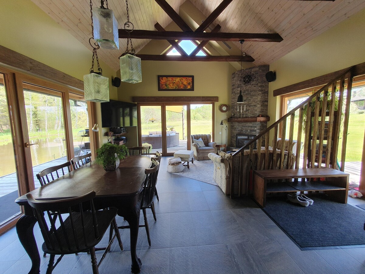 Ant Dubingos upės kranto įsikūręs atostogų namelis yra šviesus ir elegantiškas, su vaizdu į Dubingos upę ir mišką. Šiame atostogų namelyje yra sauna, kubilas (už papildomą mokestį), terasa, kondicionierius, privati paplūdimio zona, laužavietė, lauko kepsninė, krepšinio lenta, vieta iškylai ir nemokama automobilių stovėjimo aikštelė. Viešnagės metu galėsite žvejoti, plaukti baidarėmis, leistis į žygius pėsčiomis, važinėtis dviračiais, žaisti krepšinį ir užsiimti įvairia kita veikla.