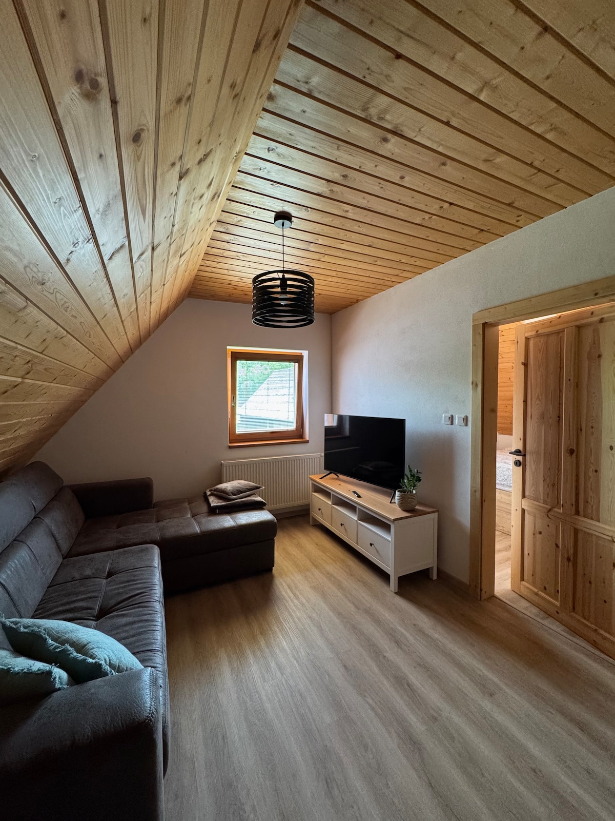Cómodo alojamiento en los hermosos alrededores de la campiña de Liptov en el pueblo de Lazisko. La casa está construida en 2020 al estilo de una casa de madera tradicional eslovaca y se encuentra en una gran parcela privada (4000 m2). En total hay 2 apartamentos separados similares en esta casa. El apartamento tiene una entrada independiente y te proporcionará una vida cómoda durante tus vacaciones. Internet rápido (LTE) y aparcamiento gratuito cerca de la casa incluidos.