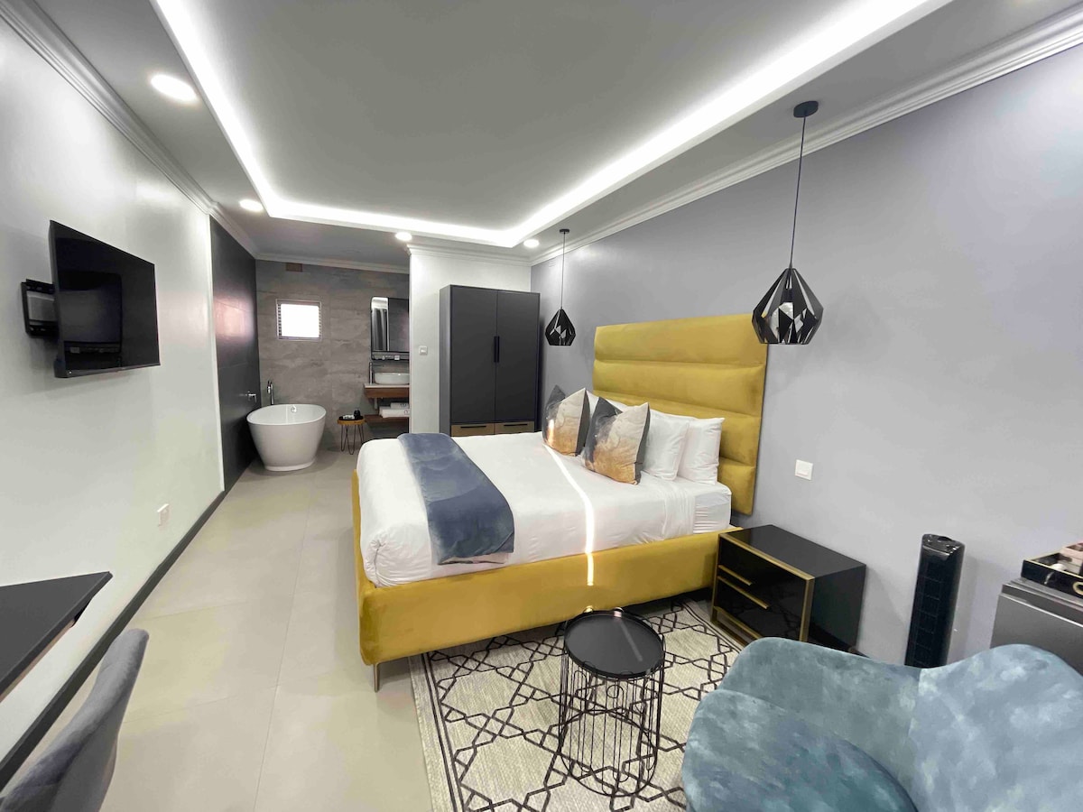 Estamos convenientemente ubicados en Gunhill, zona tranquila a la misma distancia de Village Walk y del centro de la ciudad, a 4 km de cualquier manera. 3 restaurantes dentro de nuestros alrededores, a 200 metros de distancia. Baño privado con bañera y ducha en la bañera. Escritorio bien iluminado. Suministramos comidas previa solicitud. Pohole Prolific, respaldo solar de 10 kva, respaldo del generador de 18kva, estacionamiento seguro en el lugar, comedor compartido. Somos el lugar inteligente de la ciudad. Cumple con la lucha contra LA COVID-19.