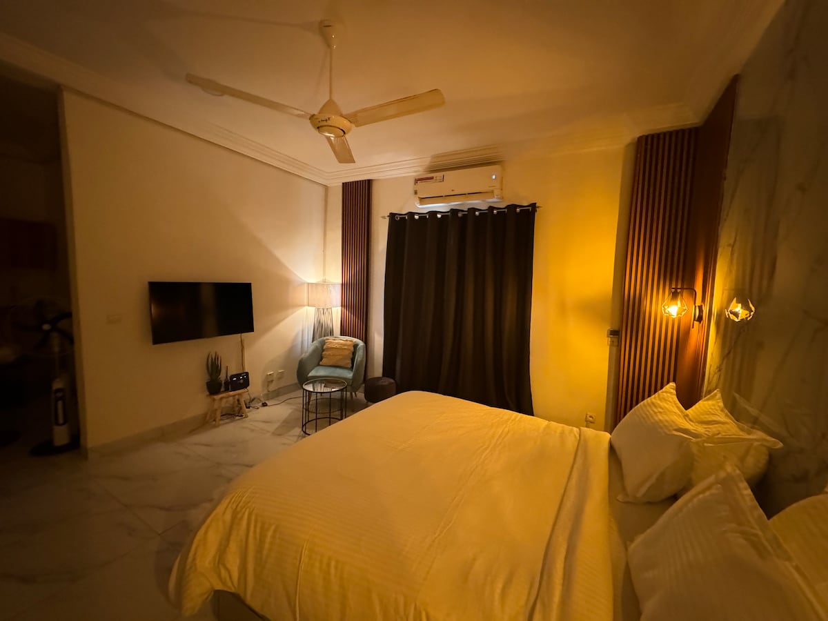 Descubre nuestro apartamento de dos habitaciones, una combinación perfecta de tradición y modernidad. Disfrute de una amplia estancia de 18 m² y un dormitorio de 12 m² con aire acondicionado y armario empotrado. La cocina está totalmente equipada con horno, microondas, nevera, vajilla y cubiertos. Para su comodidad, el apartamento está climatizado y es autónomo en electricidad gracias a un generador en caso de corte de energía. También disfruta de wifi ilimitado y Netflix para tu entretenimiento.