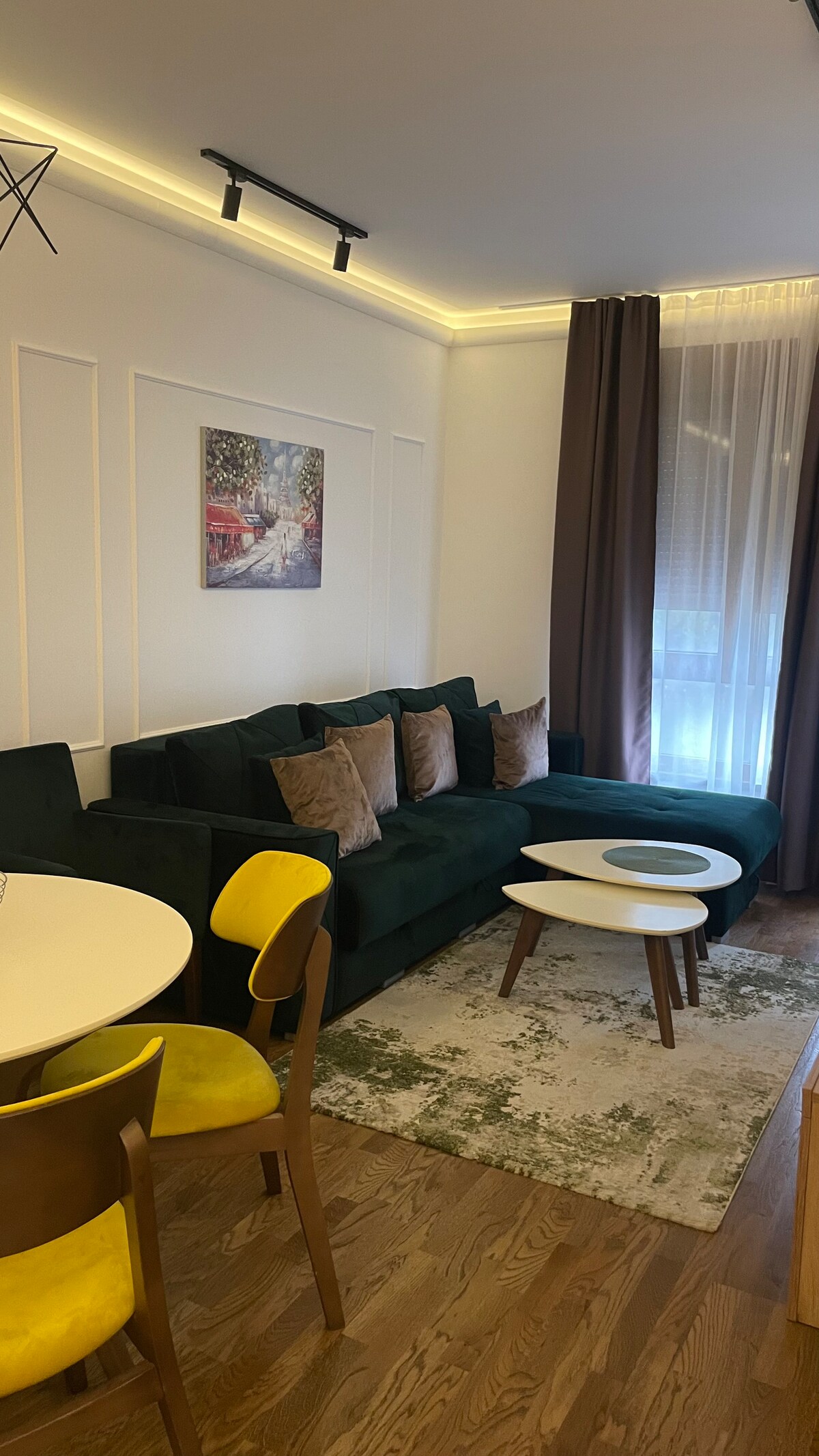 Experience modern comfort in our brand-new one-bedroom apartment! Located in a stylish new building, this space boasts a fully equipped kitchen, cozy living area, and access to premium amenities like a pool and sauna. Just a short stroll to Hotel Tornik, the town center, and top restaurants, it’s perfect for exploring or relaxing. Ideal for couples or solo travelers seeking convenience and luxury. relax in this calm, stylish space.
