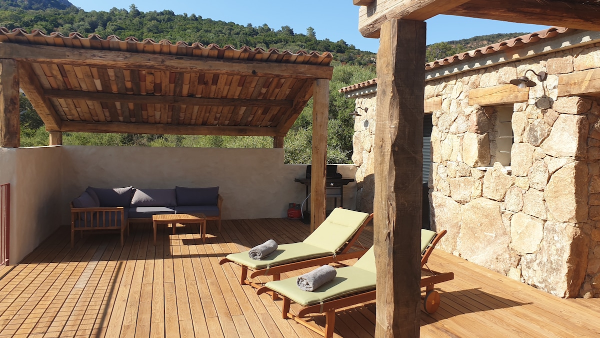 Nos bergeries sont situées sur la commune de Sotta, à 10 minutes de Porto-Vecchio. La maison se compose d'un salon/cuisine, d’1 chambre (1 lit en 160 cm), d'une salle d'eau et d'un wc séparé Elle est équipée d'une Wifi, d’une climatisation, d'une piscine privative et d'une terrasse aménagée,d’1 barbecue Commun aux 2 bergeries un terrain de boules et une table de ping-pong. Le linge de lit ainsi que les serviettes de toilette sont inclus dans le tarif. Les lits seront fait à votre arrivée.