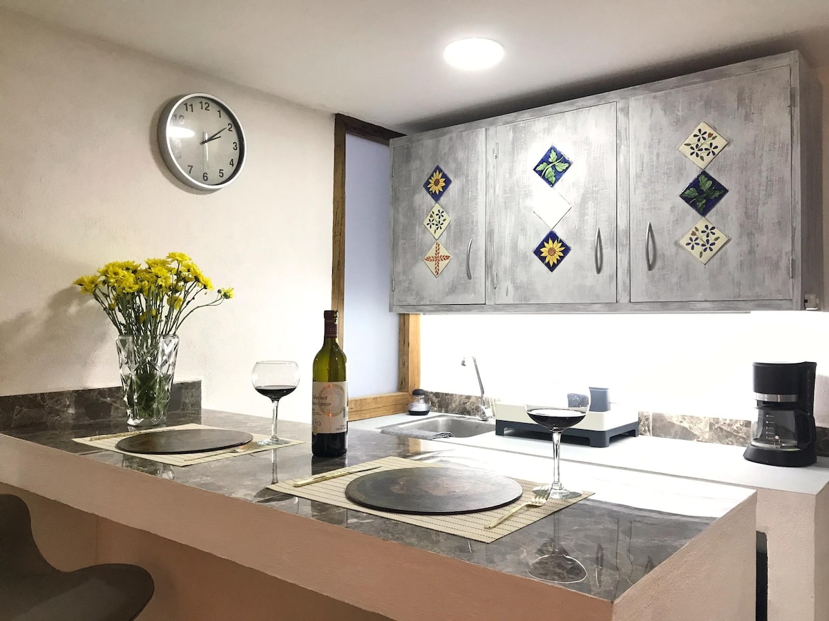 El apartamento forma parte de una de las casas históricas de Taxco, Casa Spratling, una vez el hogar y taller de William Spratling. Está a solo 3 minutos a pie de la plaza principal de la ciudad, el Zócalo. Los huéspedes tienen acceso a una terraza privada y a una hamaca que tiene una vista espectacular de la catedral de Taxco, Santa Prisca.